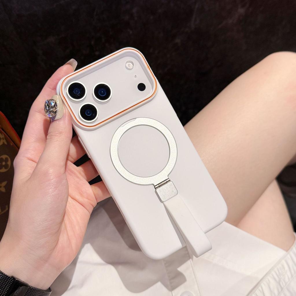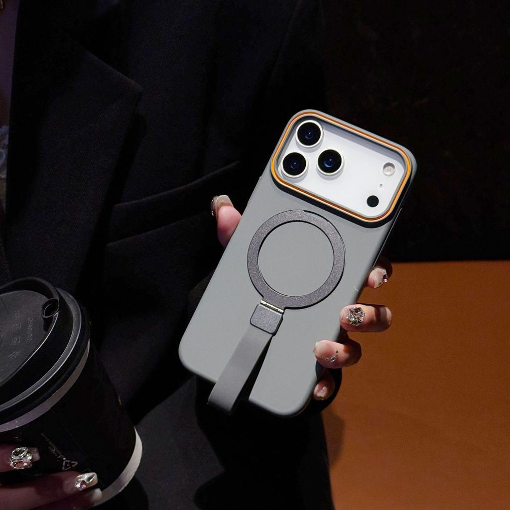 For Apple 17Promax Metal Stand Mobile Phone Case Lanyard for IPhone16 Anti-fall and Anti-slip PC Skin-like Hard Case