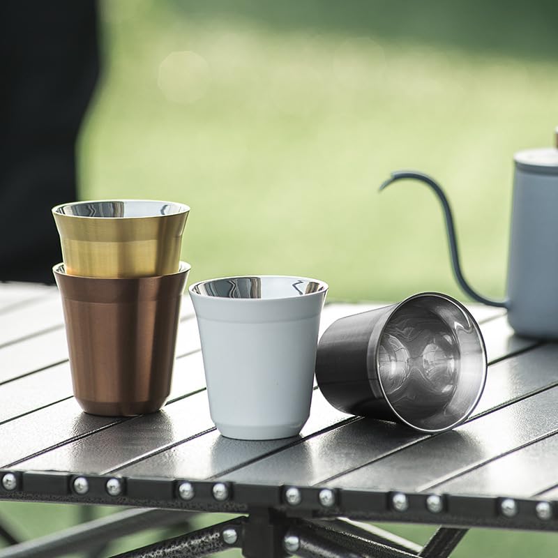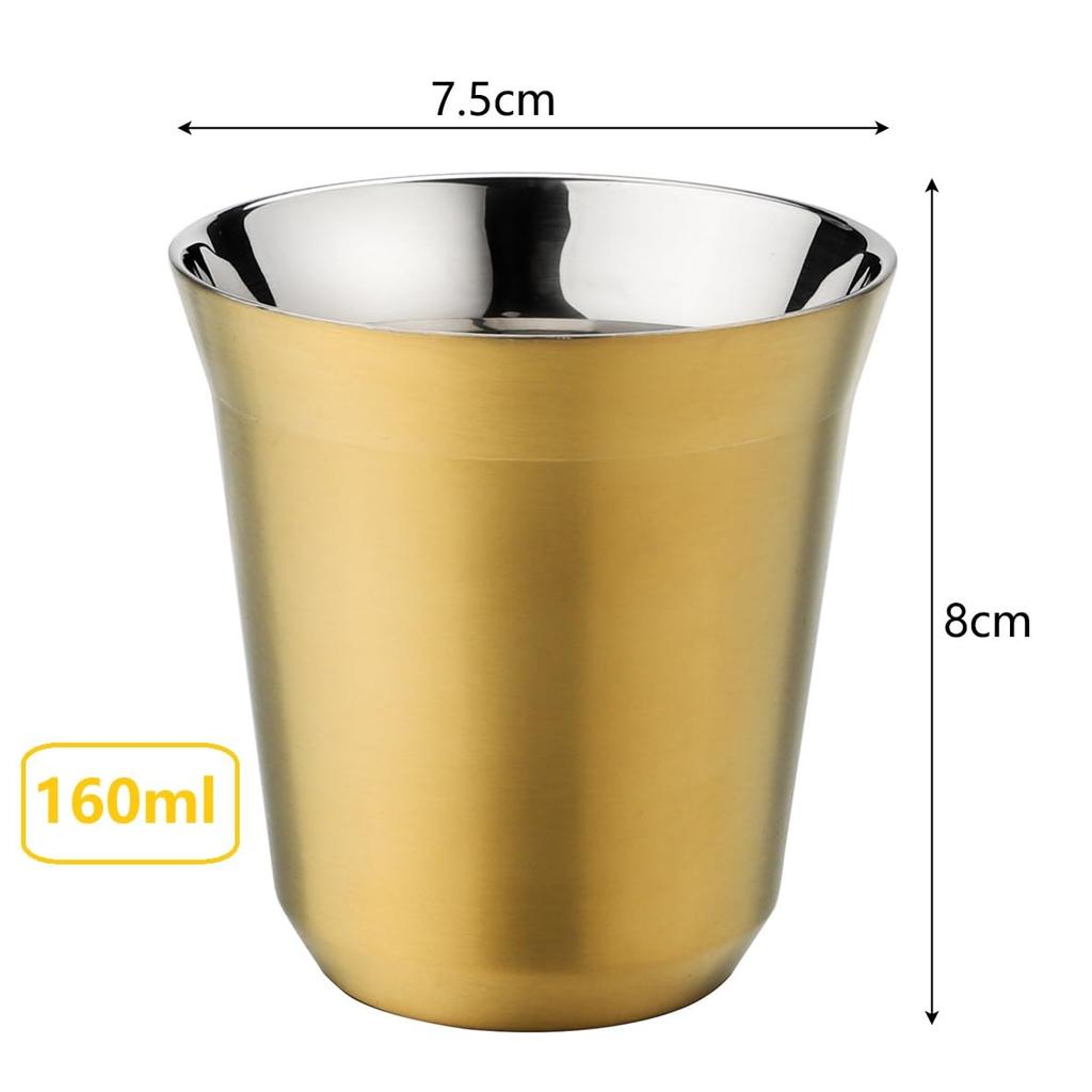 Набор из 2 чашек эспрессо из нержавеющей стали, с двойными стенками, изолированные, вместимостью 160 мл, для кофе, саке или виски