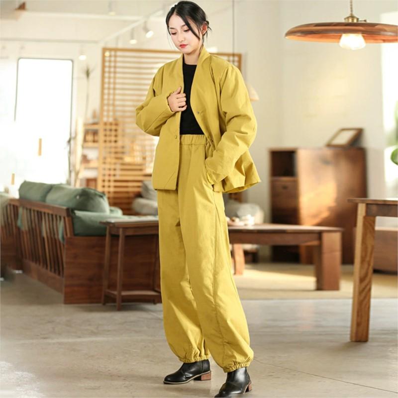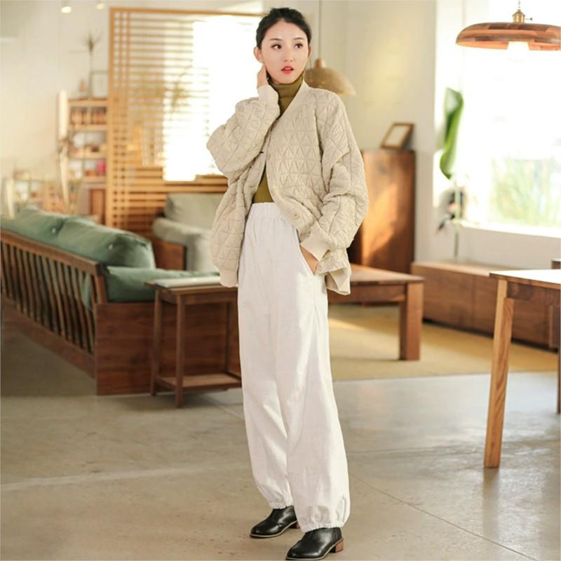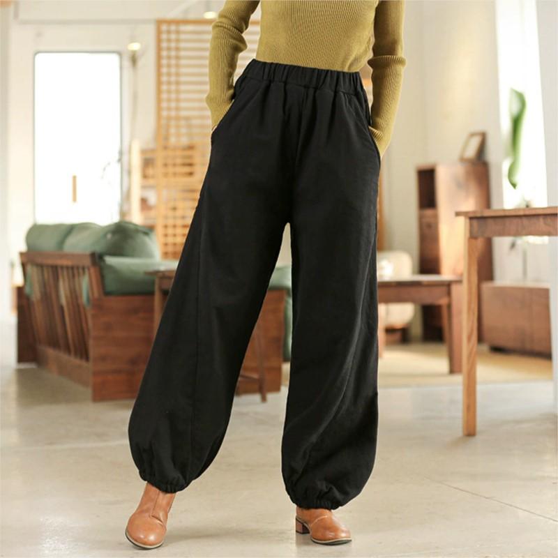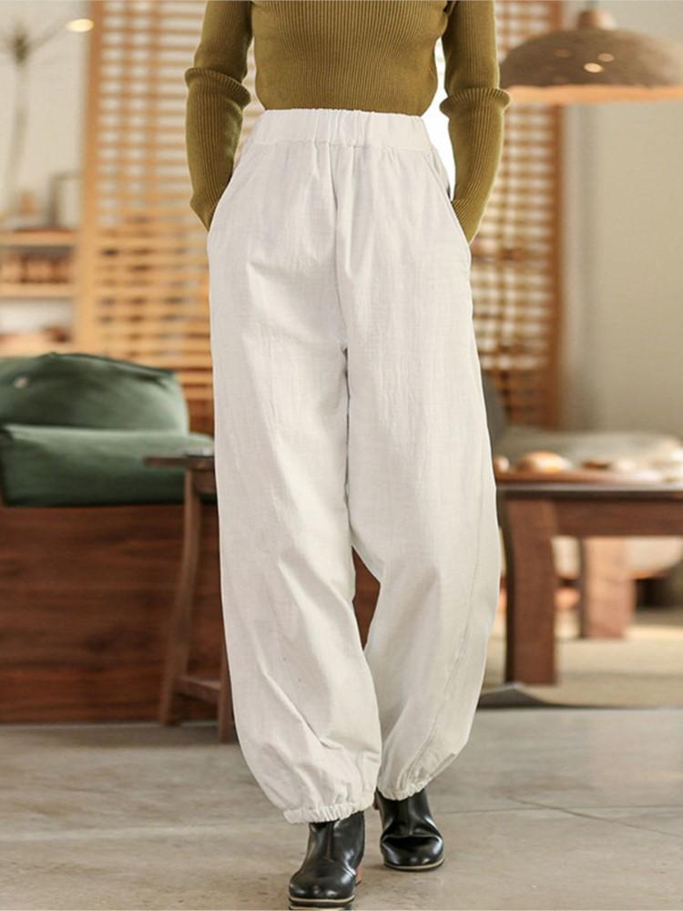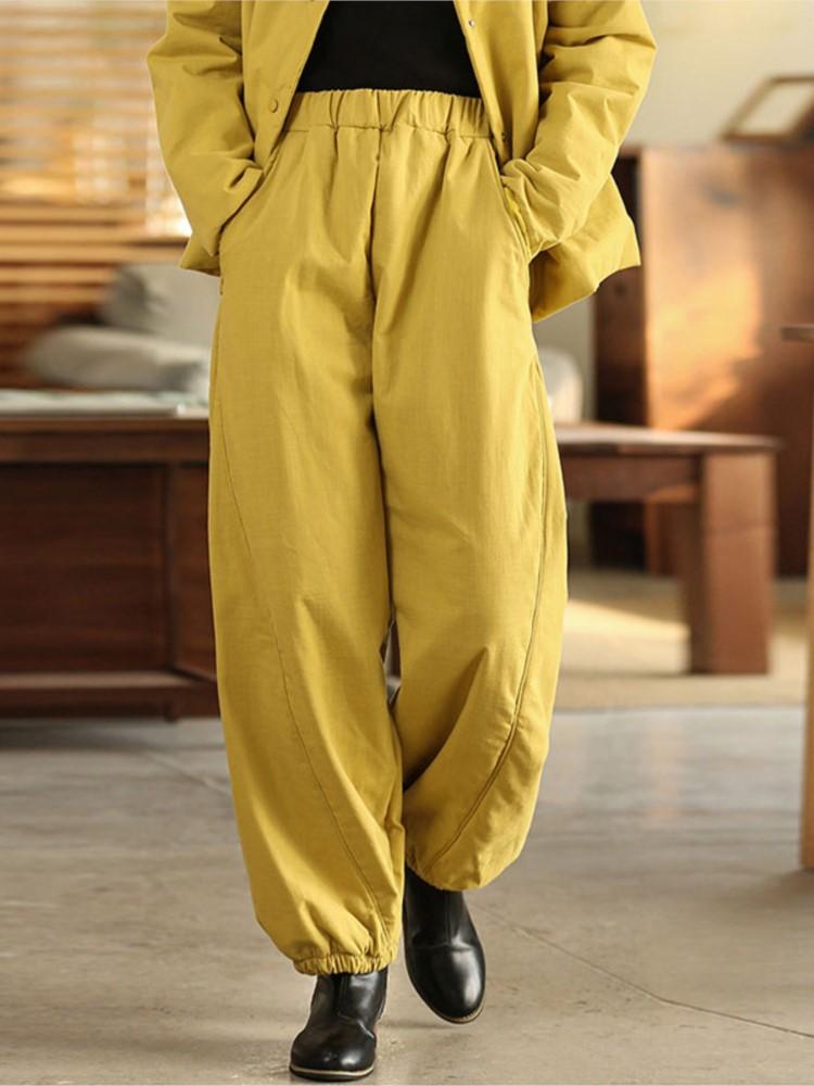Johnature Женские стеганые штаны-блумеры, свободные штаны с эластичной талией, однотонные брюки, зимние повседневные брюки