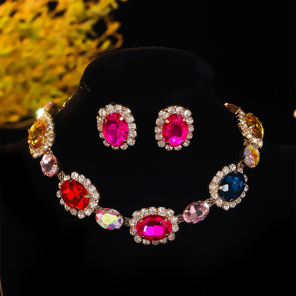 Модное высококачественное колье из цветного стекла со стразами и серьги, два комплекта для женщин