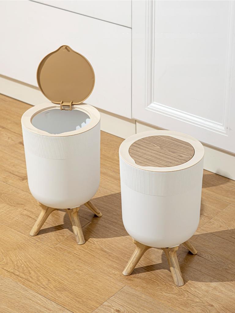 Белое круглое мусорное ведро с текстурой дерева для кухни, ванной комнаты, спальни, гостиной и офиса