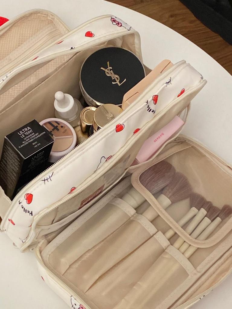 Шикарная косметичка с кошкой: Просторный, трехслойный органайзер для косметики для женщин - Идеально подходит для путешествий.