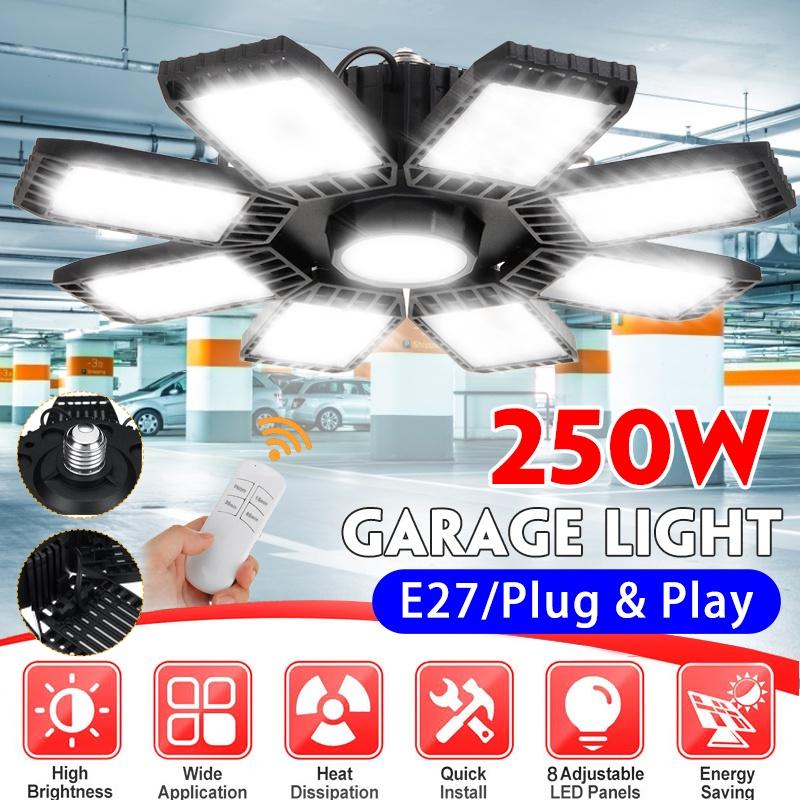 【Ультра-яркое освещение】: Оснащенные 324 высококачественными светодиодными чипами, эти гаражные фонари мощностью 250 Вт обеспечивают ультра-яркий свет с 7 деформируемыми светодиодными панелями и 1 центральной светодиодной панелью. 6500K дневной свет, 80+ CRI, позволяет наслаждаться отличными эффектами внутреннего освещения.