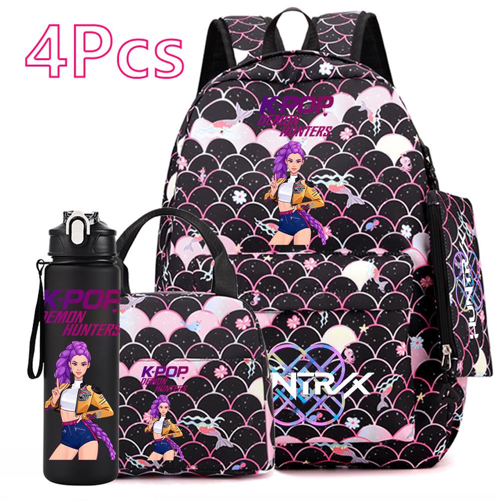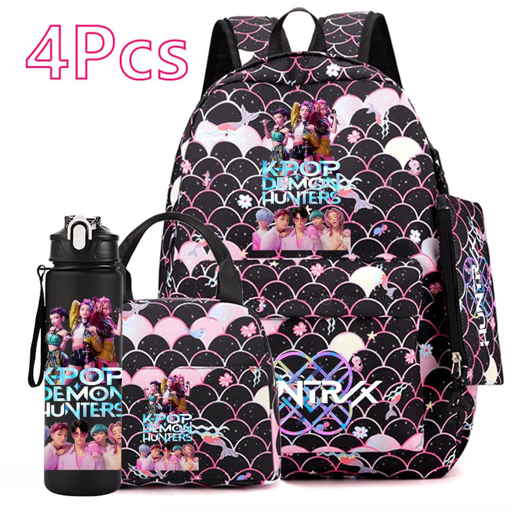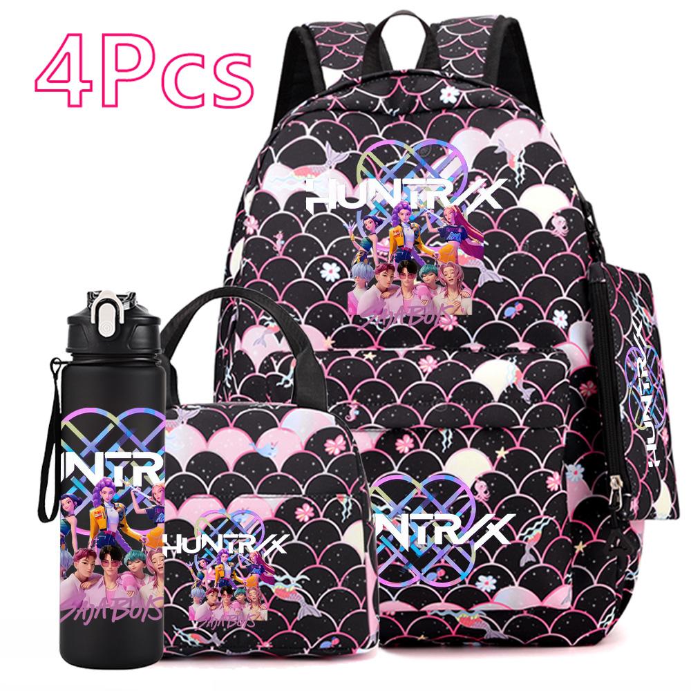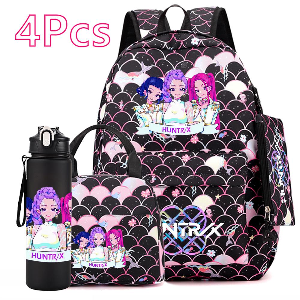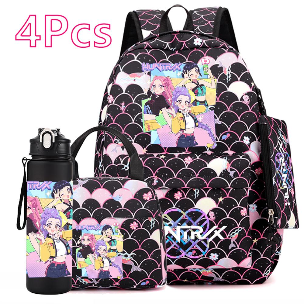 4Pcs/set Anime Cartoon Printed Backpack with Handbag Pencil Case 750Ml Water Bottler for Teenager Boy Girl Large Capacity Bookbag Schoolbag Mochila