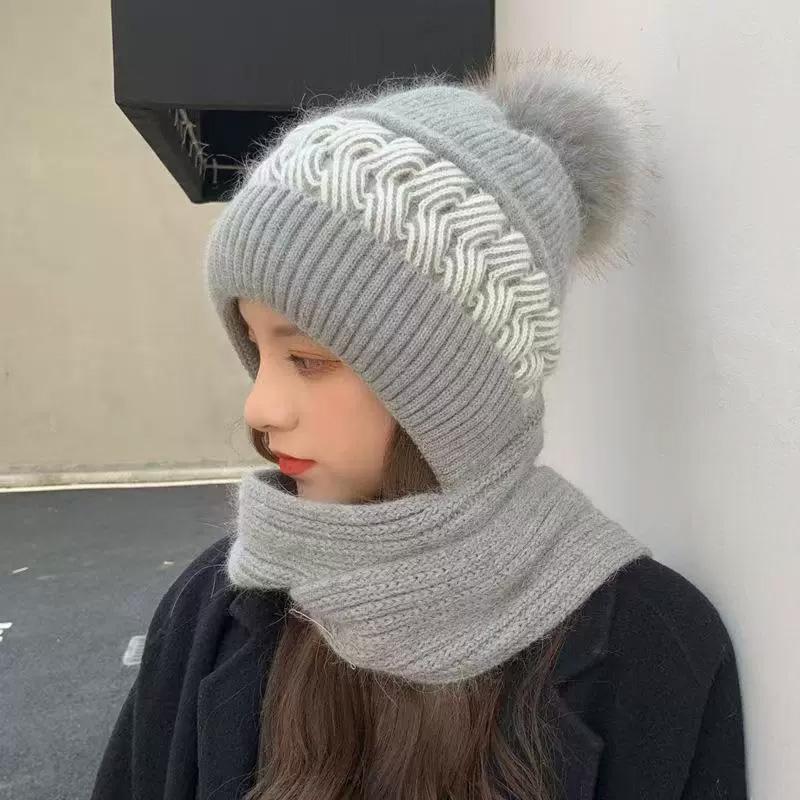 1 шт. Шапка Ветрозащитные наушники Вязаная шапка Встроенный шарф Уютный Защищающий уши Теплый комплект Модный