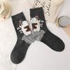 1 пара женских носков Осень Зима Принт с буквами Дышащие носки до щиколотки с кошкой Высококачественные носки до середины икры Милая кошка Смесь полиэстера