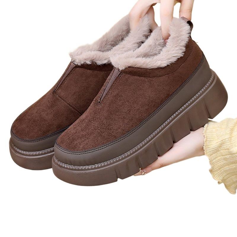 Женские замшевые зимние сапоги для снега, слипоны, теплые ботильоны на щиколотке с подкладкой из искусственного меха, водостойкая повседневная удобная обувь, нескользящая подошва — купить товар онлайн с бесплатной доставкой по всему миру!
