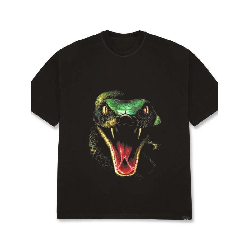 Футболка оверсайз с круглым вырезом, черная, с принтом головы змеи, уличная одежда, повседневная одежда