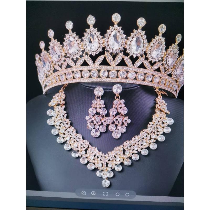 Новая Свадебная Корона Костюм-тройка Свадебная Корона Тиара Ожерелье Серьги Корейские Аксессуары для Свадебного Платья Супер Фея