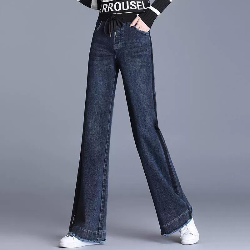 Корейская мода Свободные прямые джинсы Женские Эластичные с высокой талией Винтажные Широкие джинсовые брюки Повседневный шик Мешковатая уличная одежда Вакерос