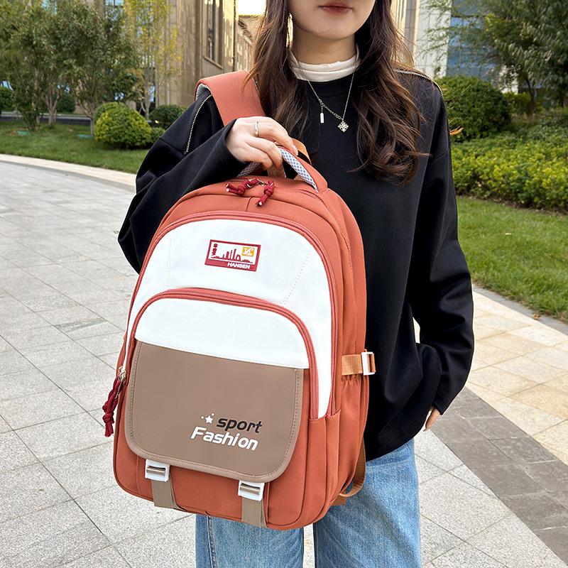 Stylish Color Block Backpack for High School Students - Large Capacity Casual Schoolbag