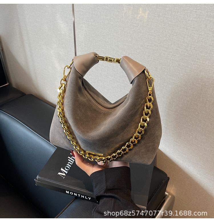 Маленькая сумка с матовой цепочкой для ношения в руке, женская, новая 2025, корейская версия, ретро замшевая сумка-пельмень, текстурная сумка-мессенджер