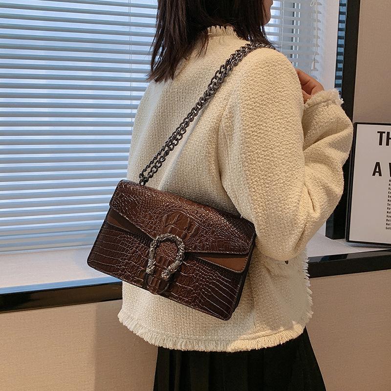 Bags Women's Bag 2025 New High-End Chain Crossbody Shoulder Bag European and American Retro Crocodile Pattern Small Square Bag