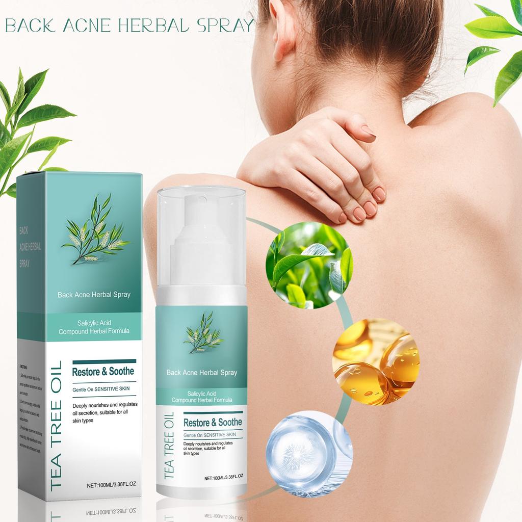 Спрей на травах от прыщей на спине регулирует секрецию кожного сала, успокаивает кожу, уменьшает комедоны от прыщей и укрепляет кожный барьер, 100 мл