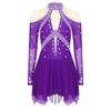 Женское платье для лирического танца, дизайн колор-блок, полупрозрачная сетчатая вставка, блестящие стразы, асимметричная танцевальная одежда