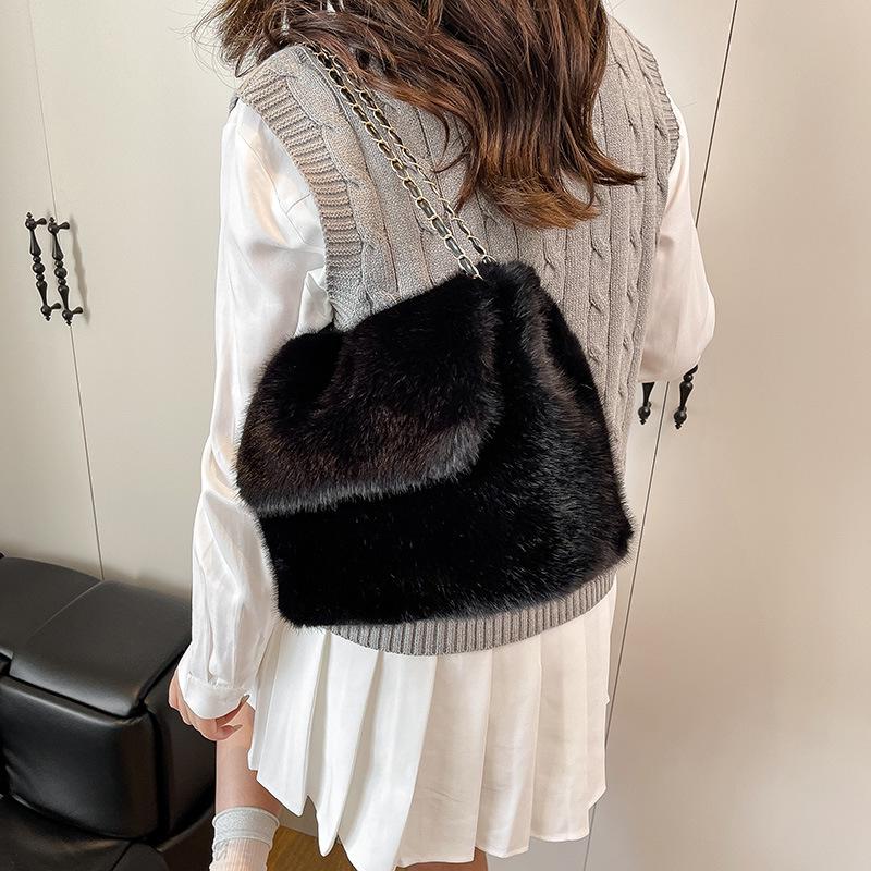 Женская плюшевая косметичка Осень/Зима 2025: Трендовый клатч большой вместимости и наплечная сумка кроссбоди