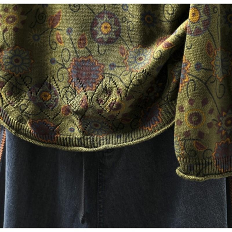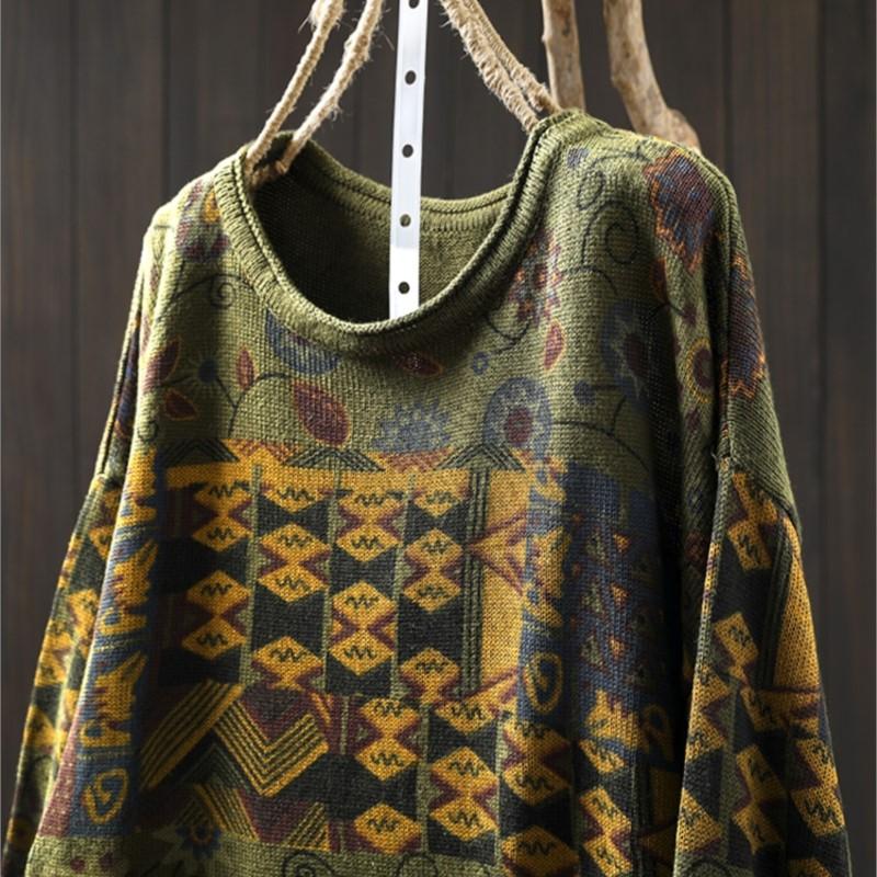 Johnature Винтажный свободный свитер с круглым вырезом для женщин, зимний свитер с длинными рукавами в китайском стиле в винтажном стиле