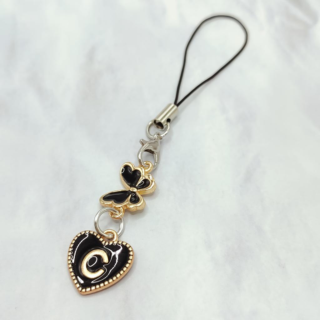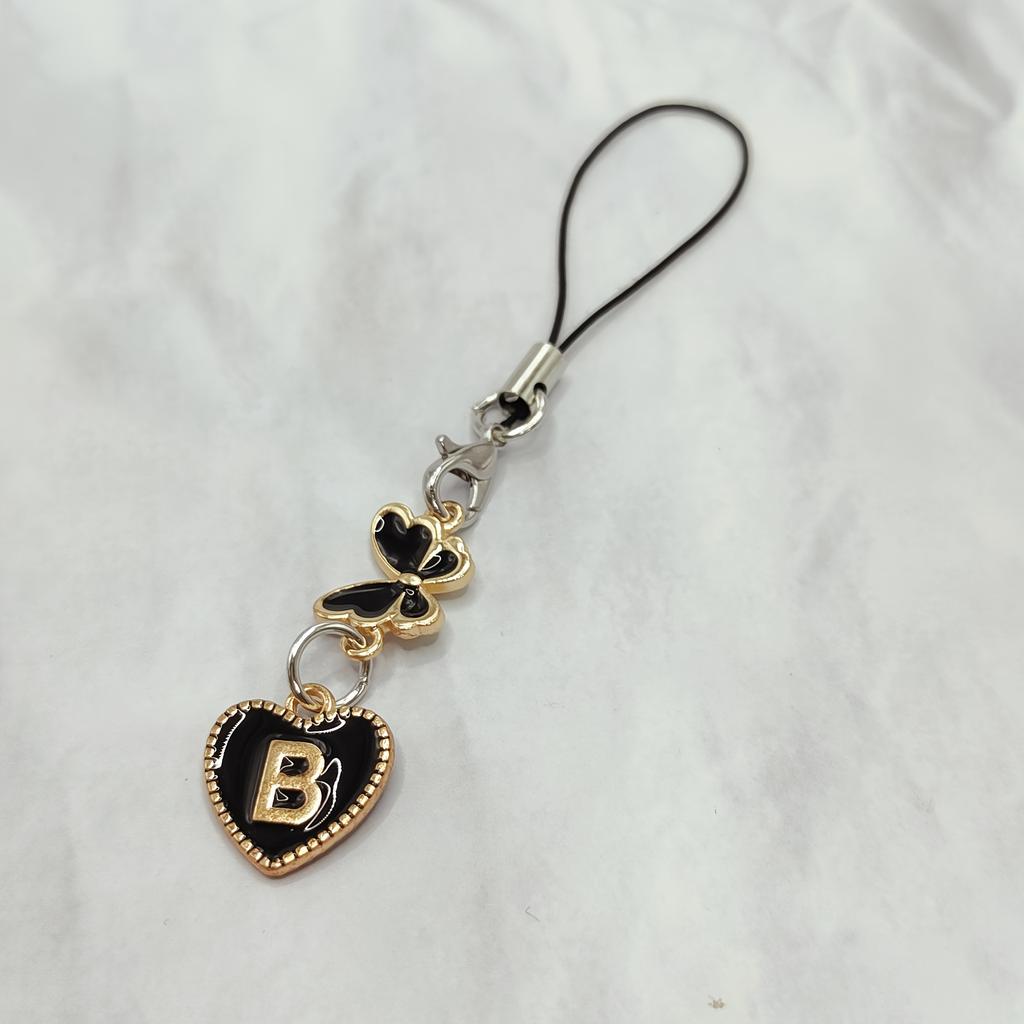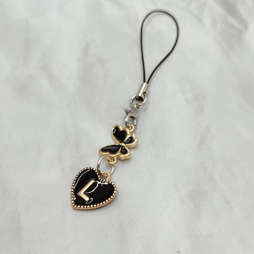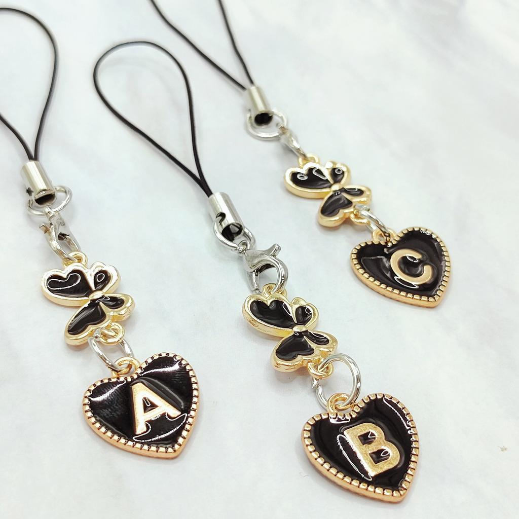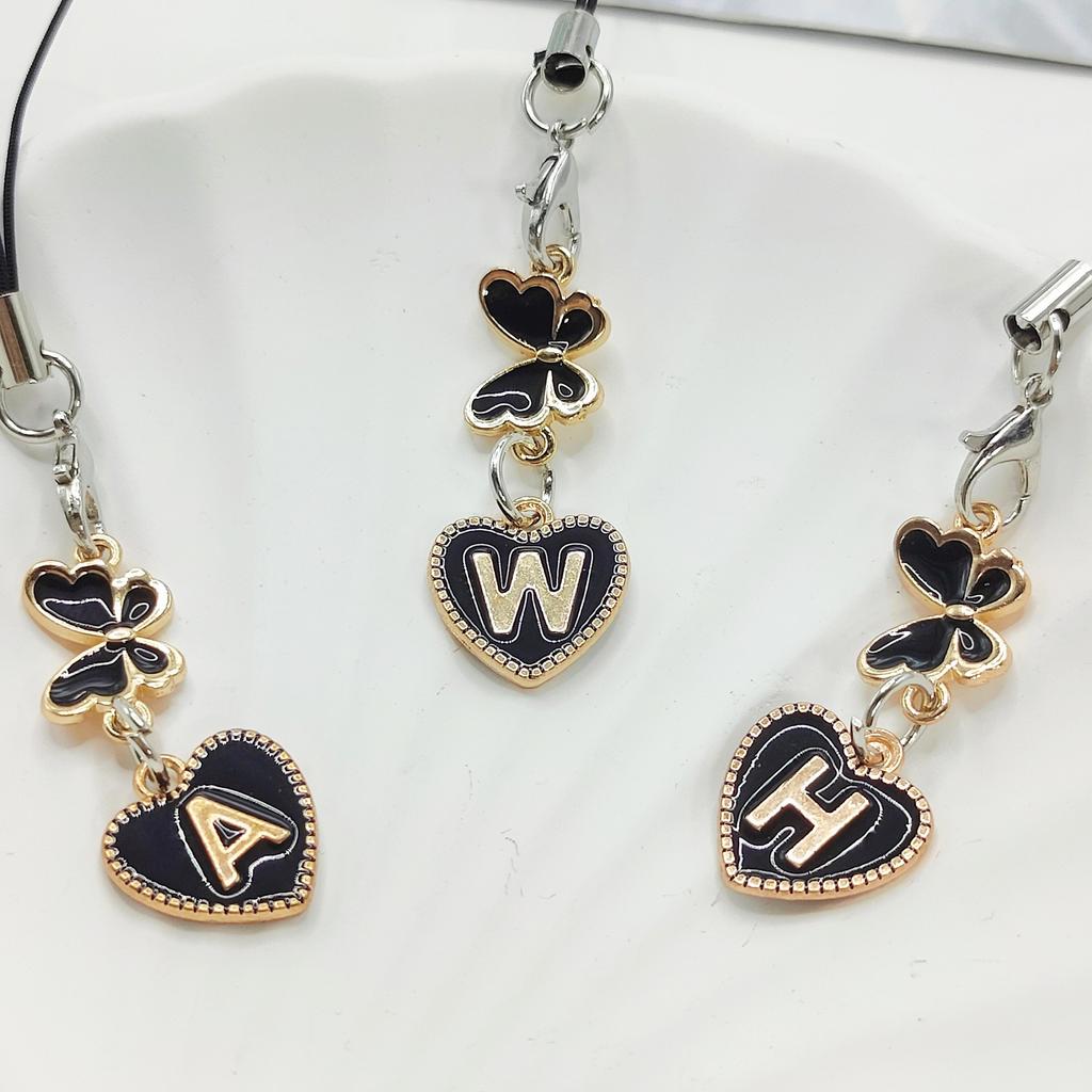 1 шт. Подвеска для мобильного телефона, Сделай сам, Черная подвеска в европейском стиле с буквой и красивой бабочкой, Ремешок для телефона, Шарм для сумки