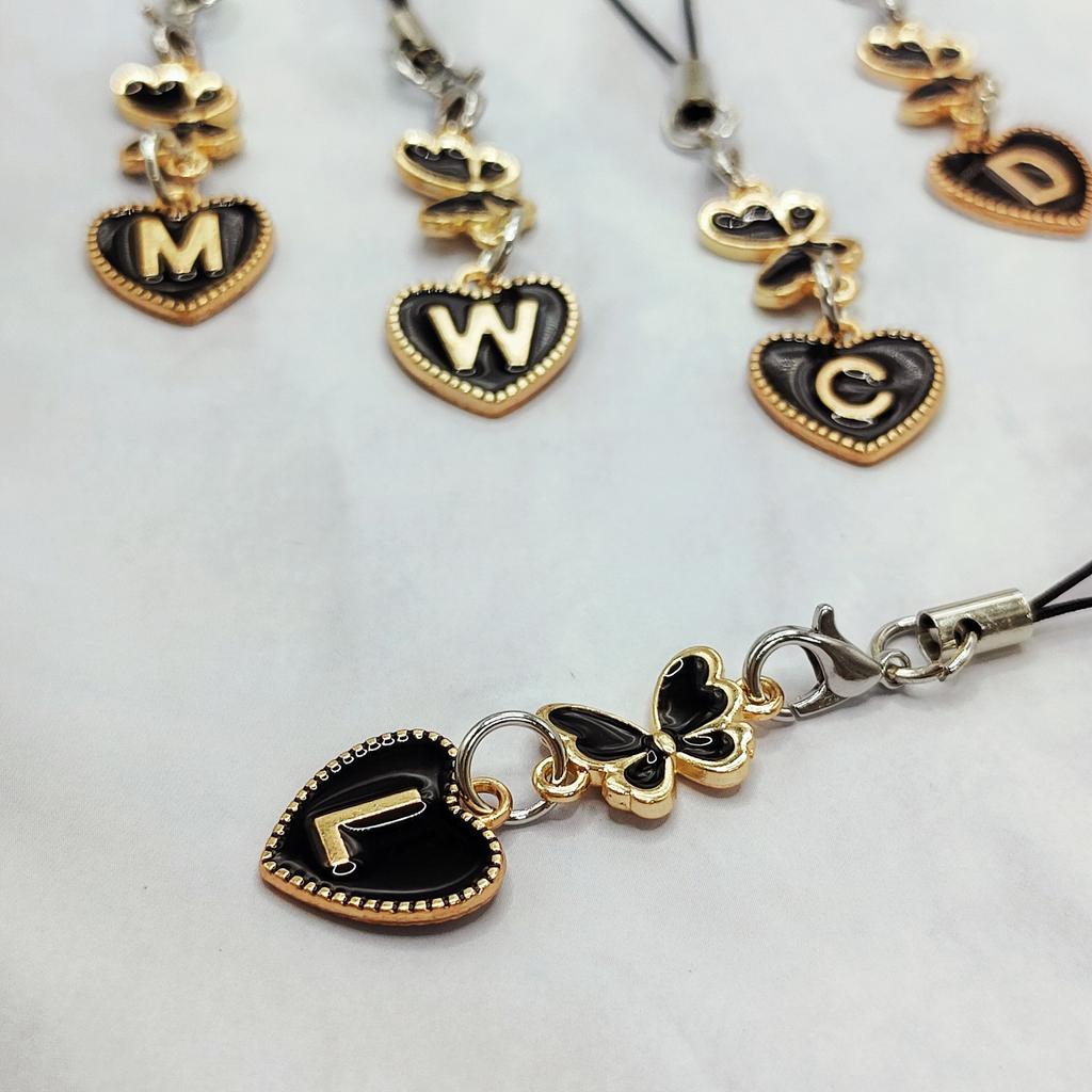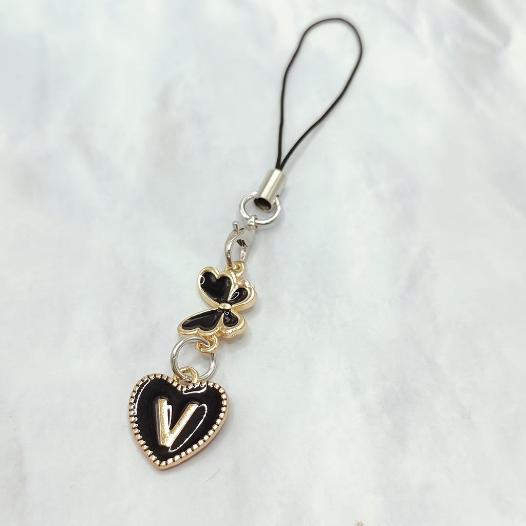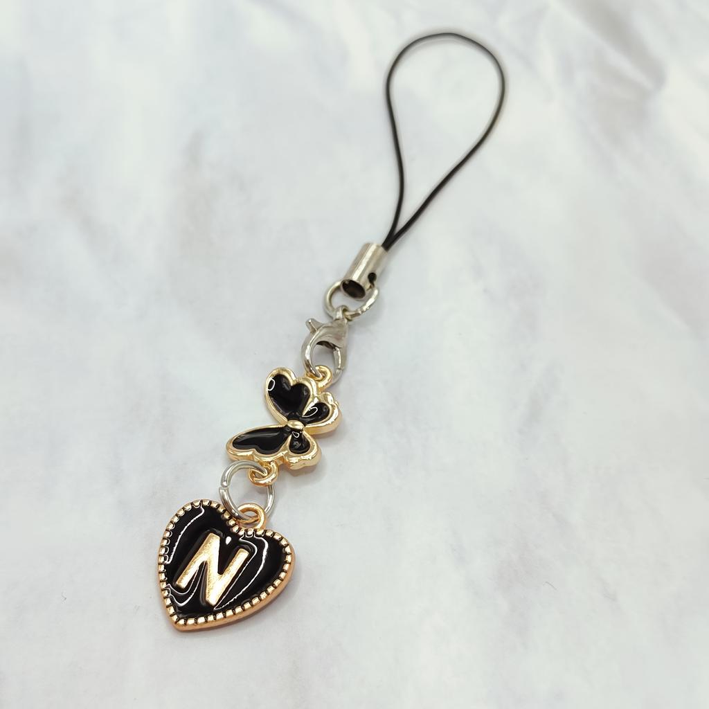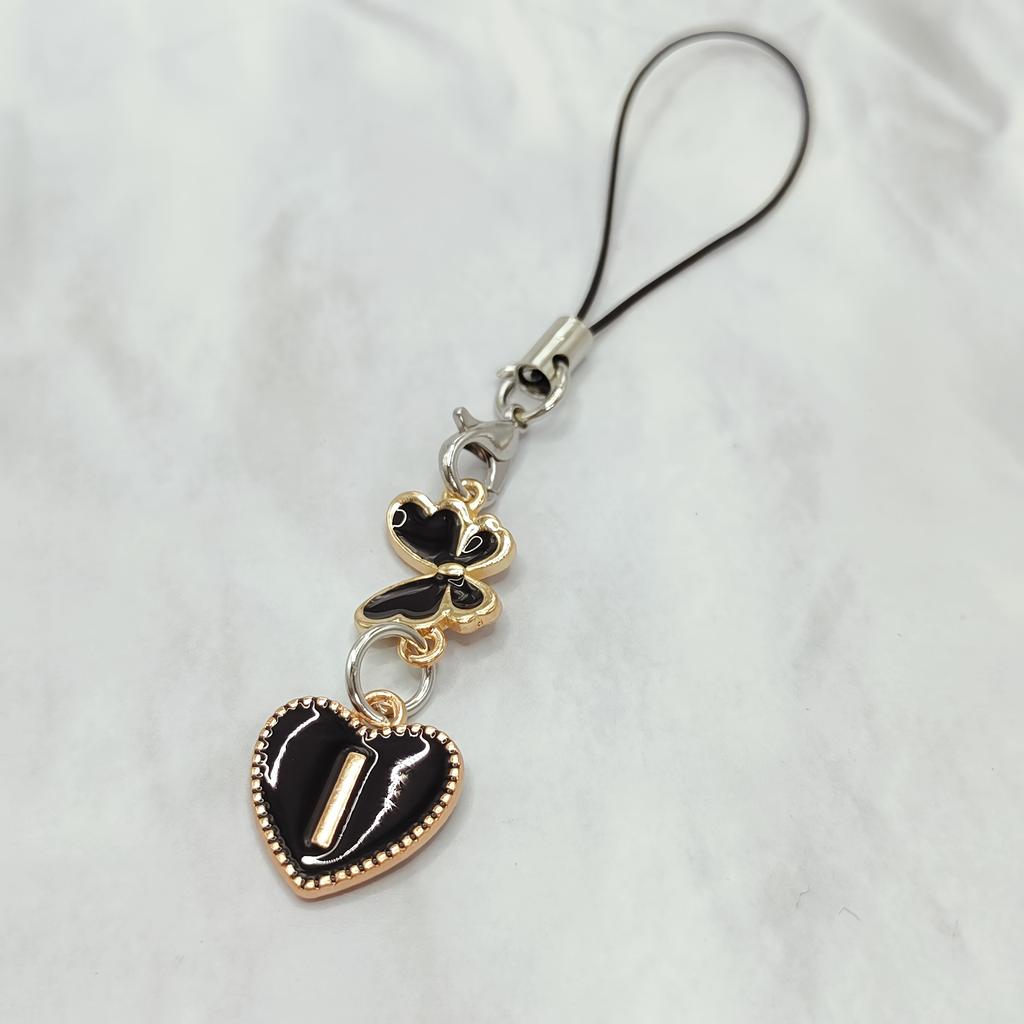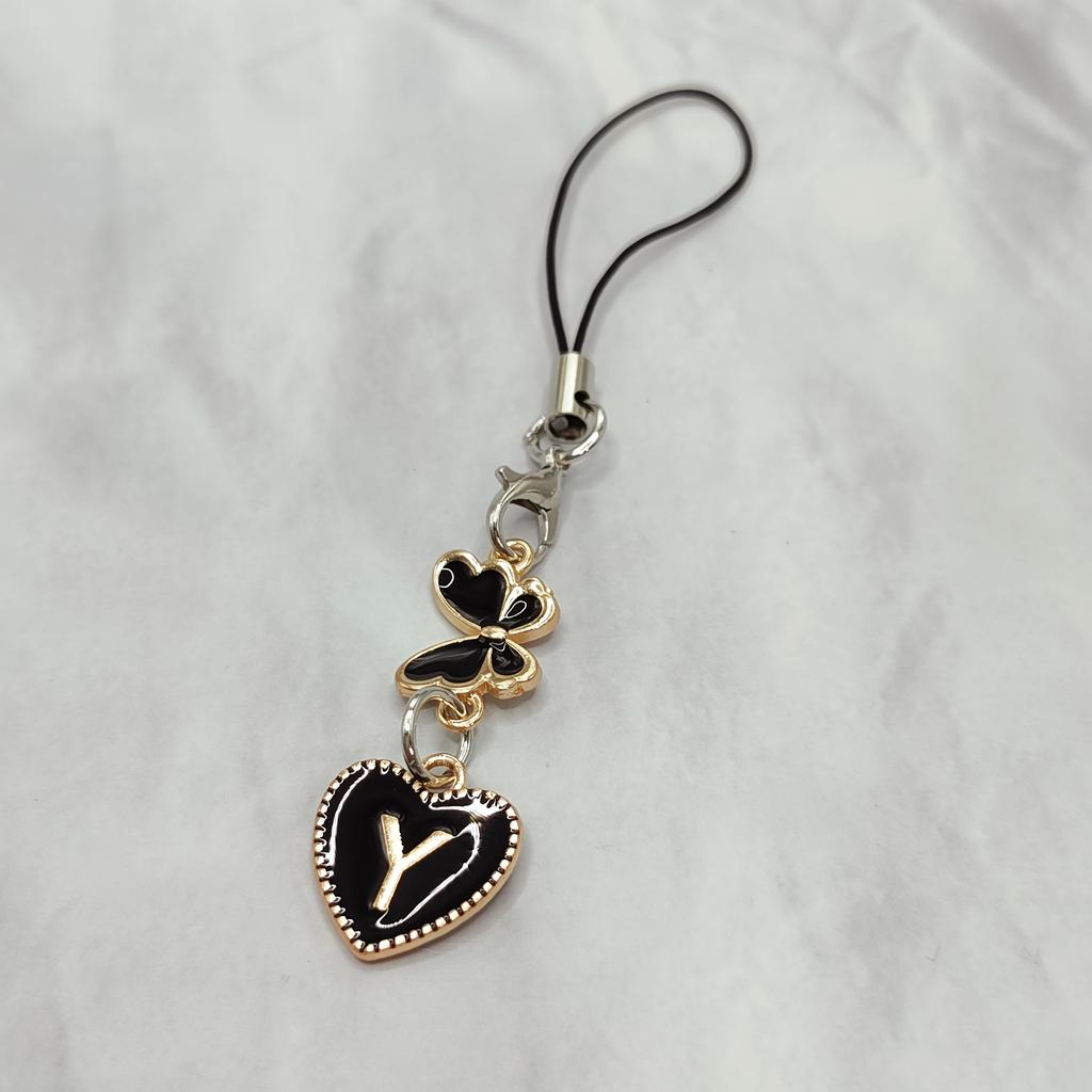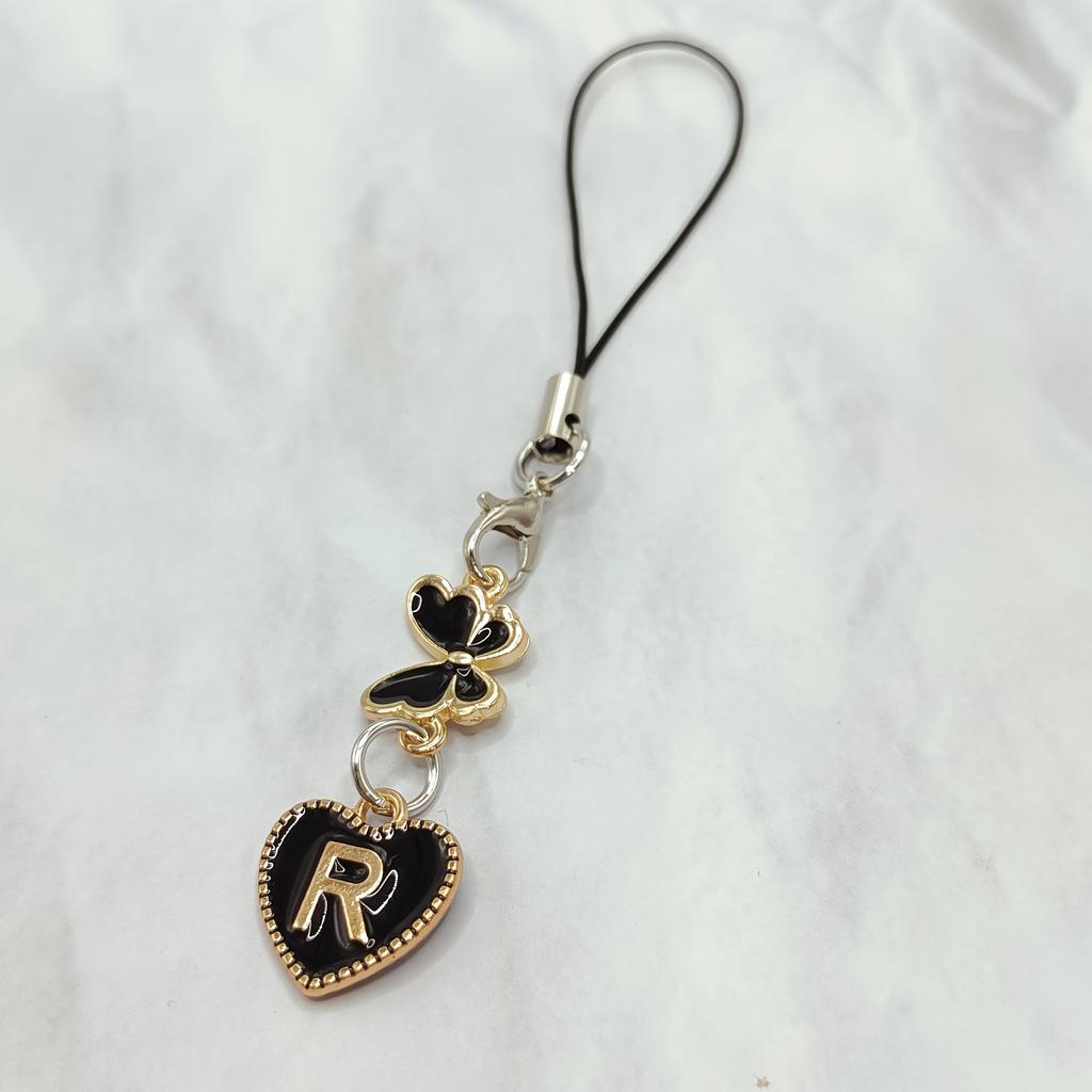 1 шт. Подвеска для мобильного телефона, Сделай сам, Черная подвеска в европейском стиле с буквой и красивой бабочкой, Ремешок для телефона, Шарм для сумки