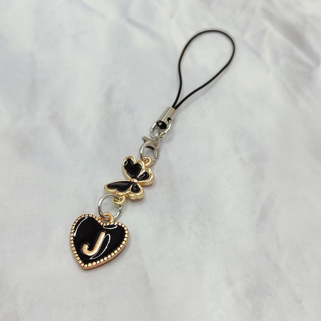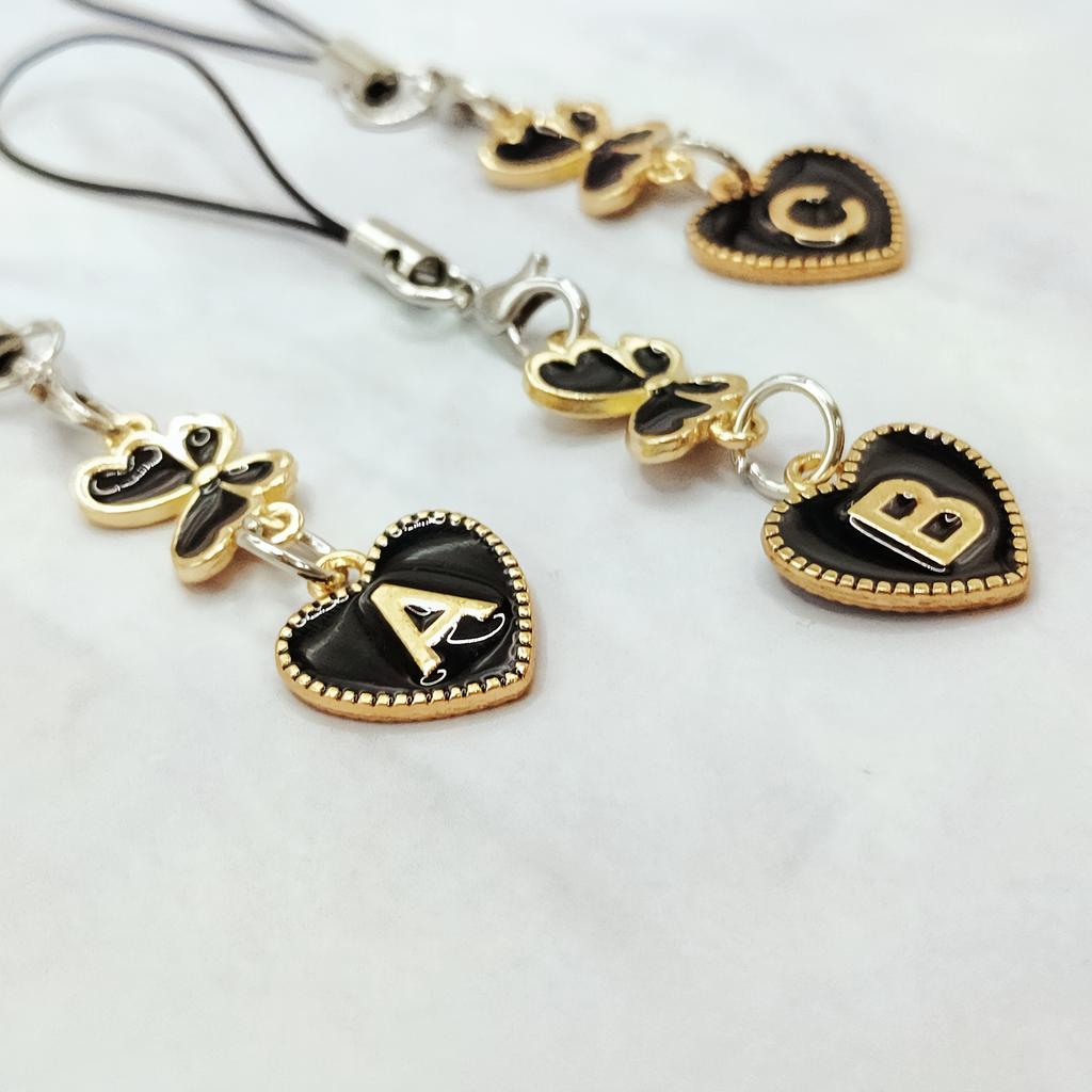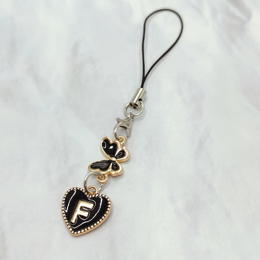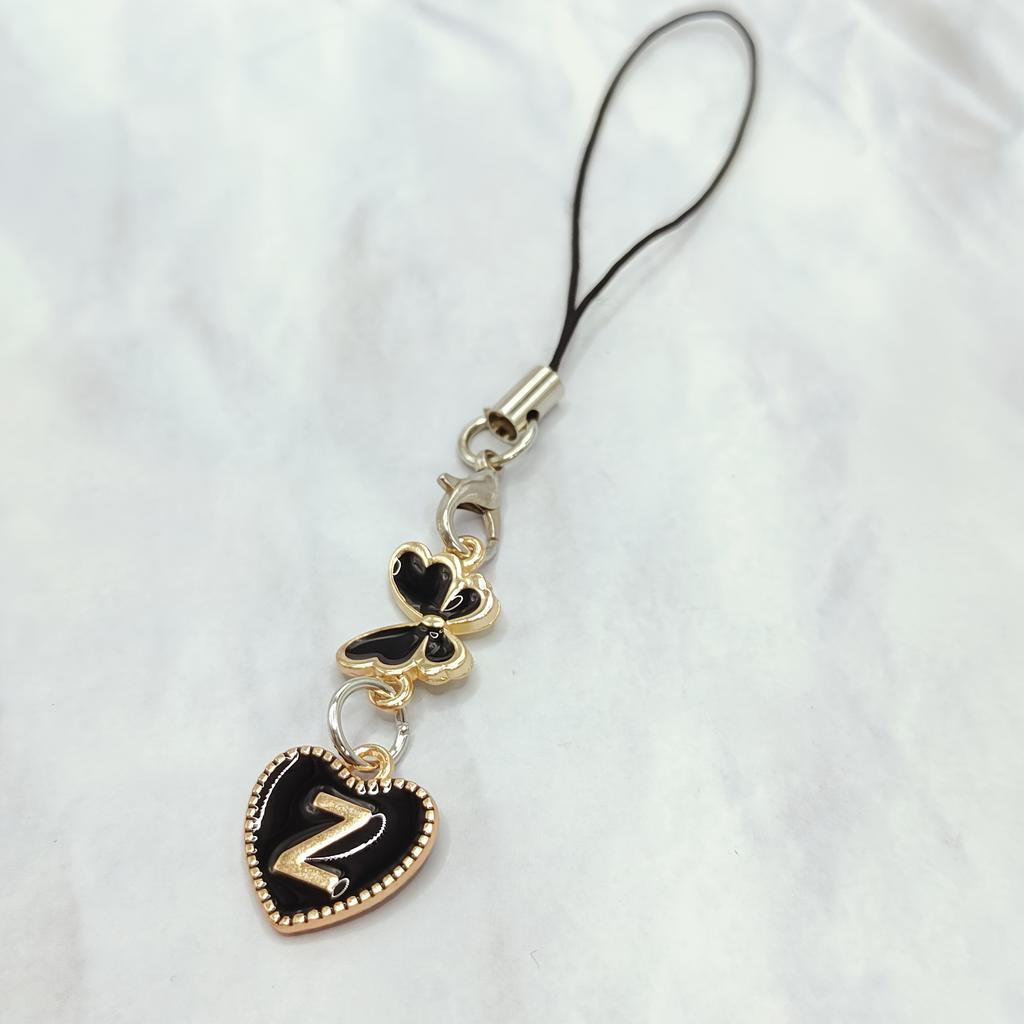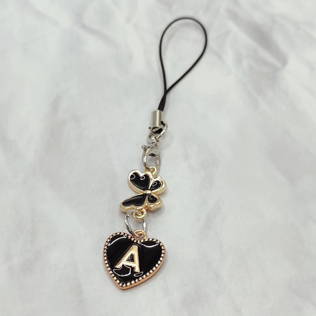 1 шт. Подвеска для мобильного телефона, Сделай сам, Черная подвеска в европейском стиле с буквой и красивой бабочкой, Ремешок для телефона, Шарм для сумки