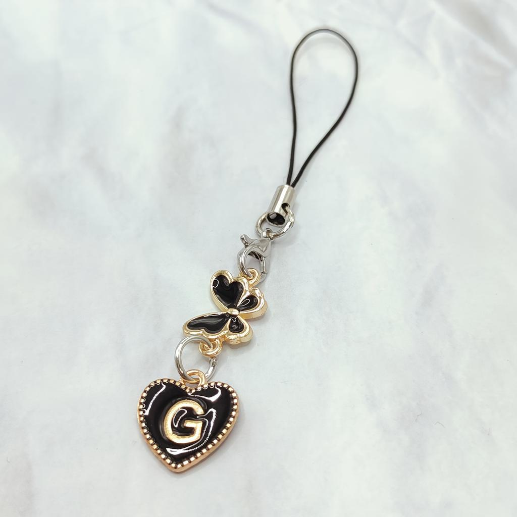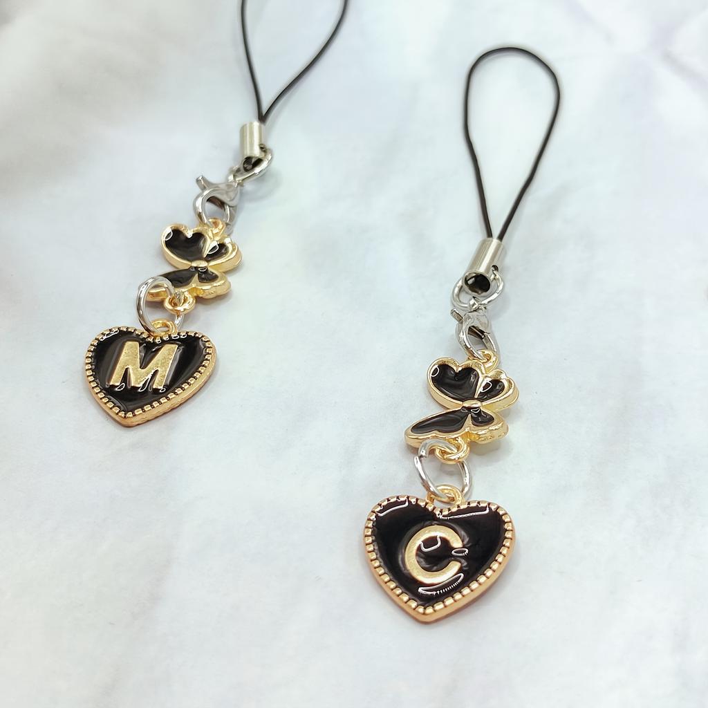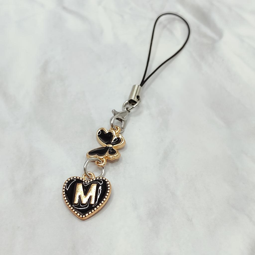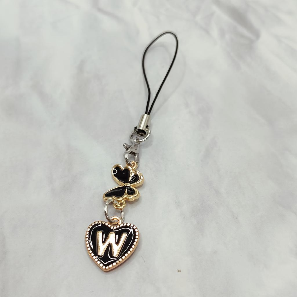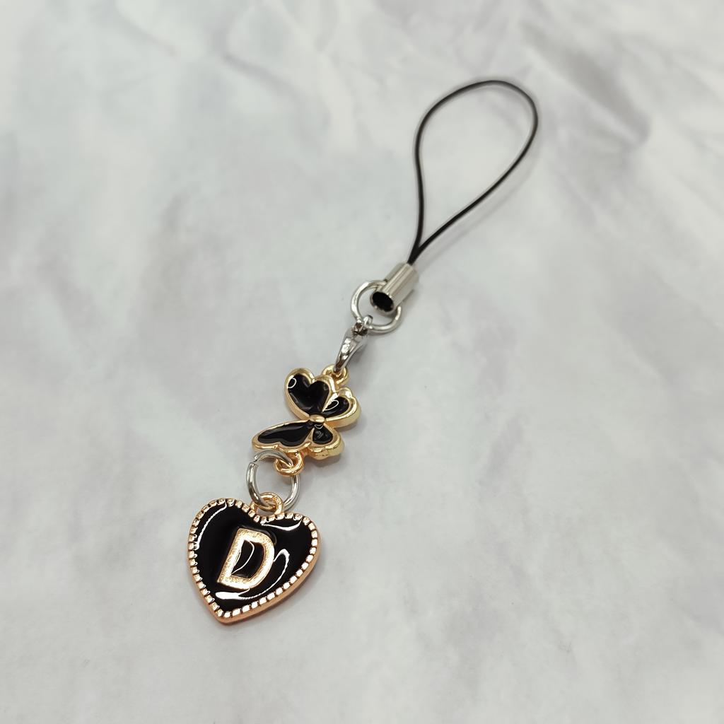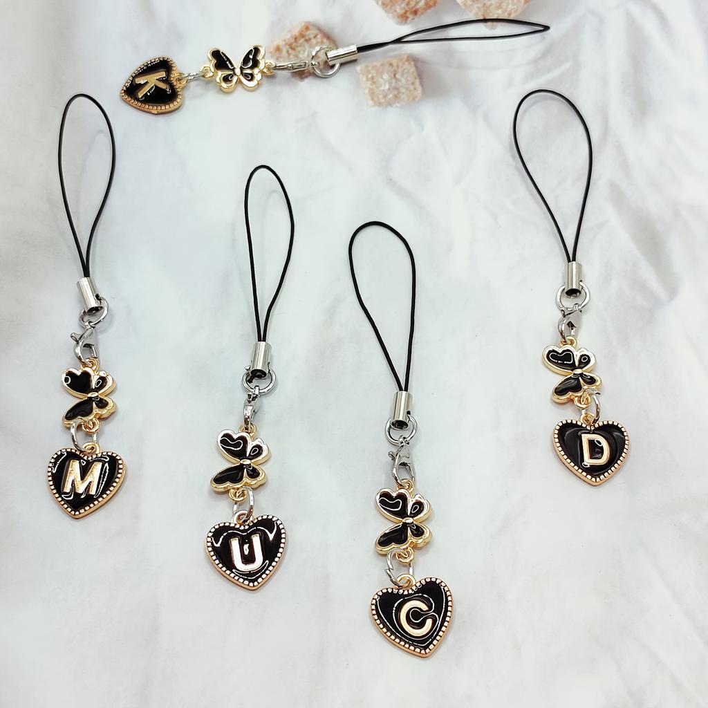 1 шт. Подвеска для мобильного телефона, Сделай сам, Черная подвеска в европейском стиле с буквой и красивой бабочкой, Ремешок для телефона, Шарм для сумки