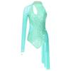 Женское платье для фигурного катания с блестящими пайетками, трико, на одно плечо, из прозрачной сетки, с длинным рукавом, халтер, танцевальная одежда