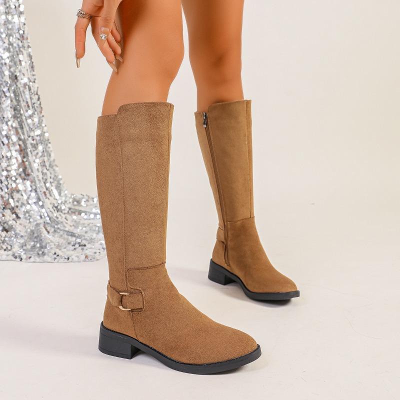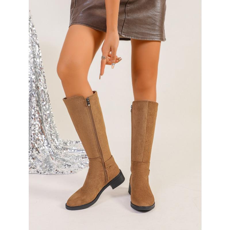 Зимние винтажные ботинки с высоким голенищем 2025 года, большого размера, с круглым носком, боковой молнией, толстым каблуком, женские ботинки в рыцарском стиле
