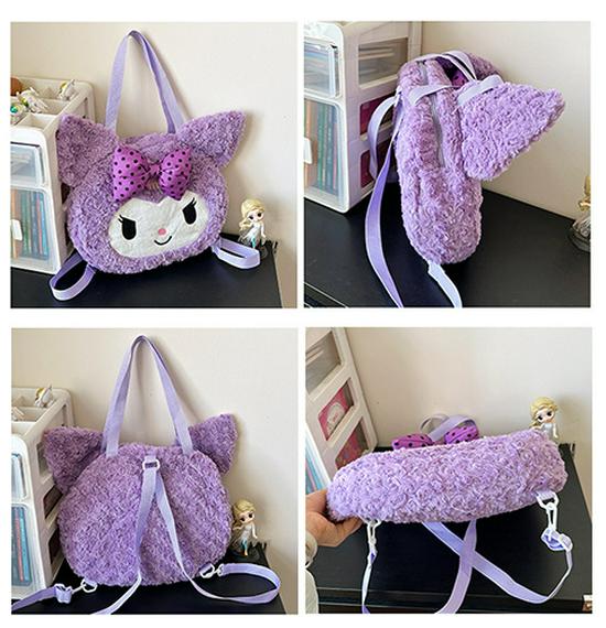 Velvet Rose Plush Crossbody Bag for Children - Cute Japanese Tote & Backpack for Little Girls