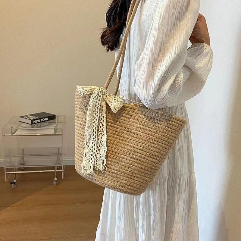 Стильная плетеная пляжная сумка-тоут ручной работы для женщин - Большая вместимость для отпускных прогулок