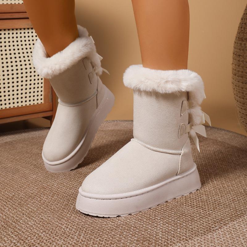 Теплые зимние сапоги на толстой подошве женские 2025 зимние новые большого размера маффины с флисом и утолщенным шерстяным голенищем полусапоги хлопковые