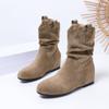 Женские зимние ботинки 2025 года с круглым носком, плиссированной голенью, на танкетке, средней длины. Большие размеры, ретро-стиль.