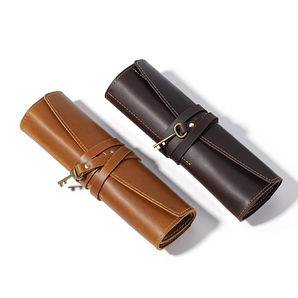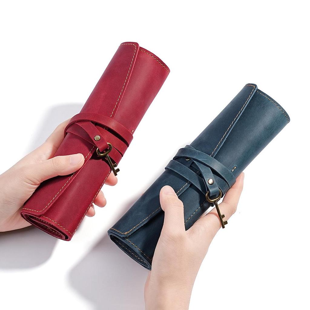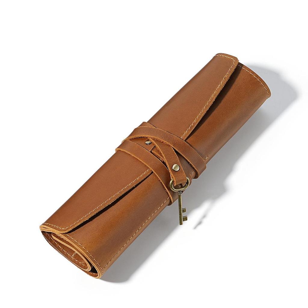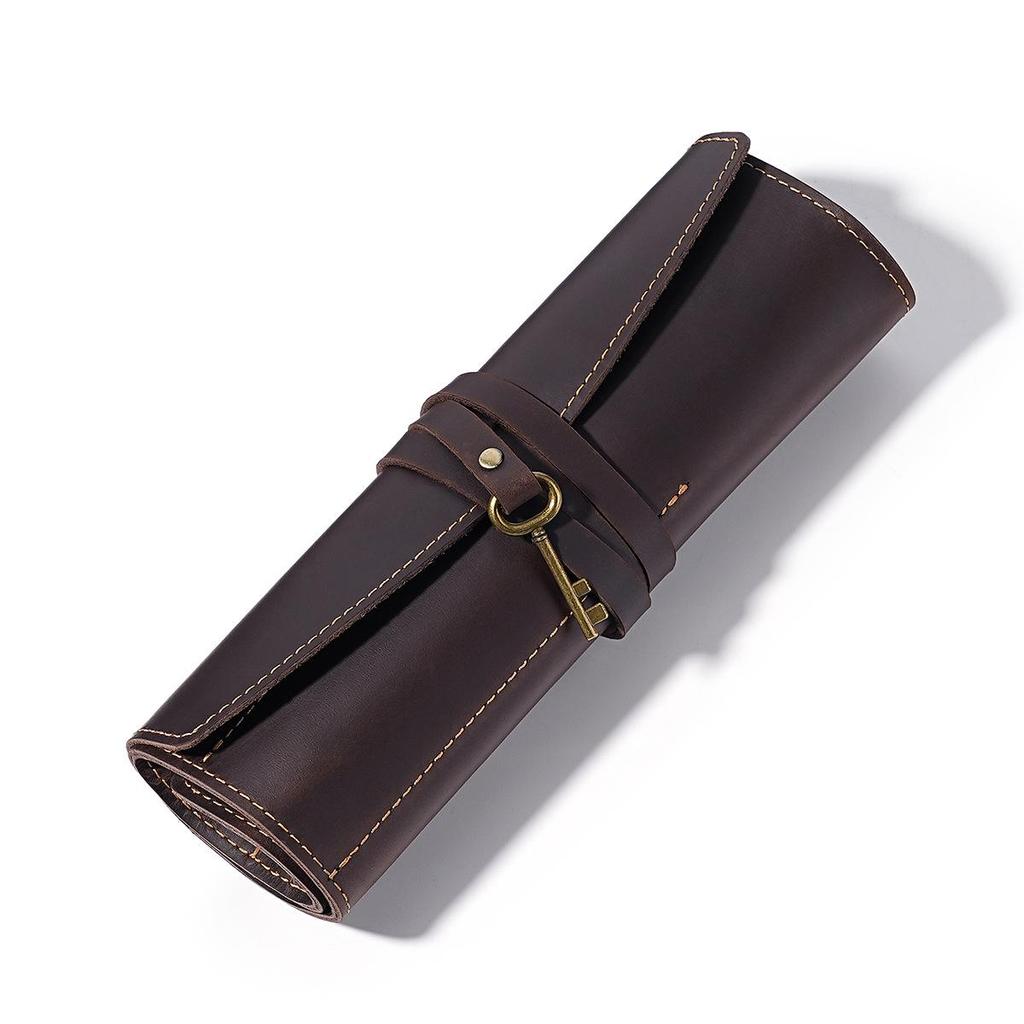 Дорожный кожаный сворачивающийся пенал - Crazy Horse Держатель для перьевой ручки, карандаша и шариковой ручки