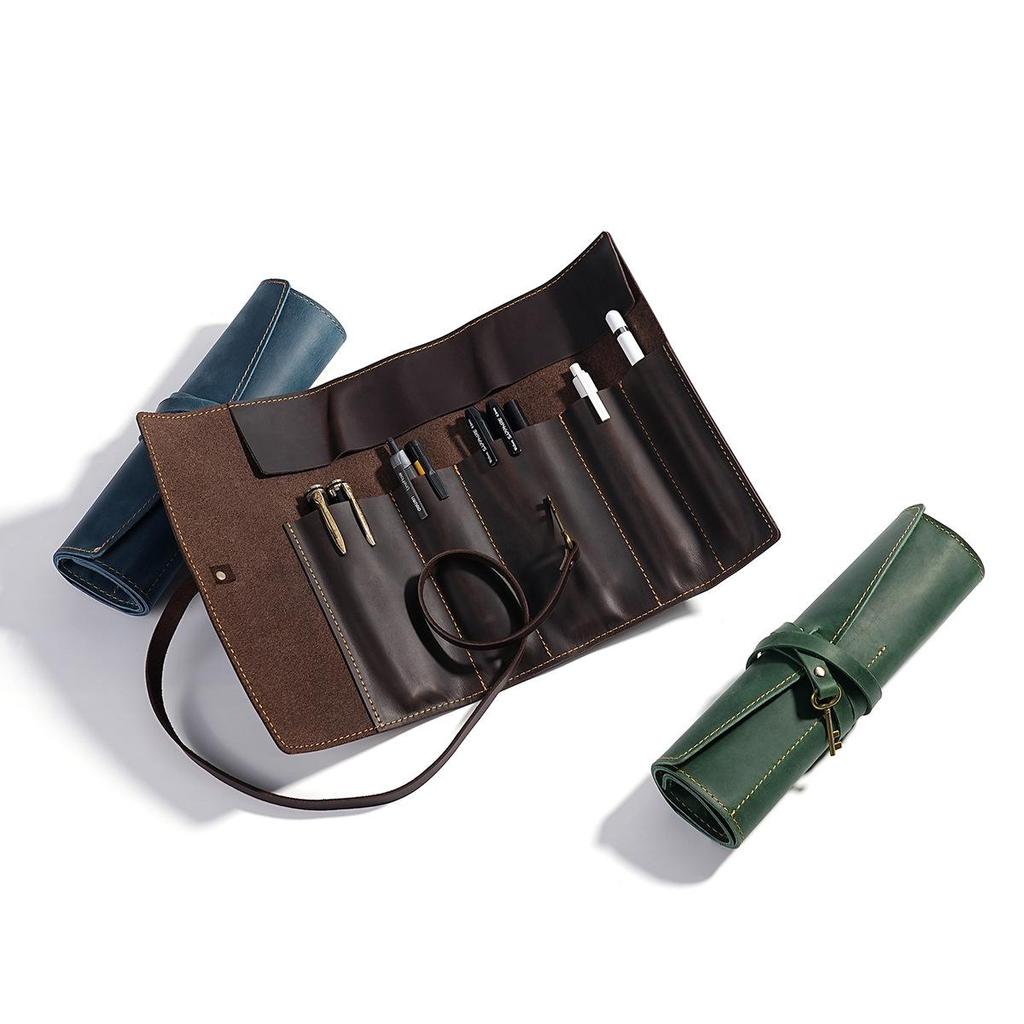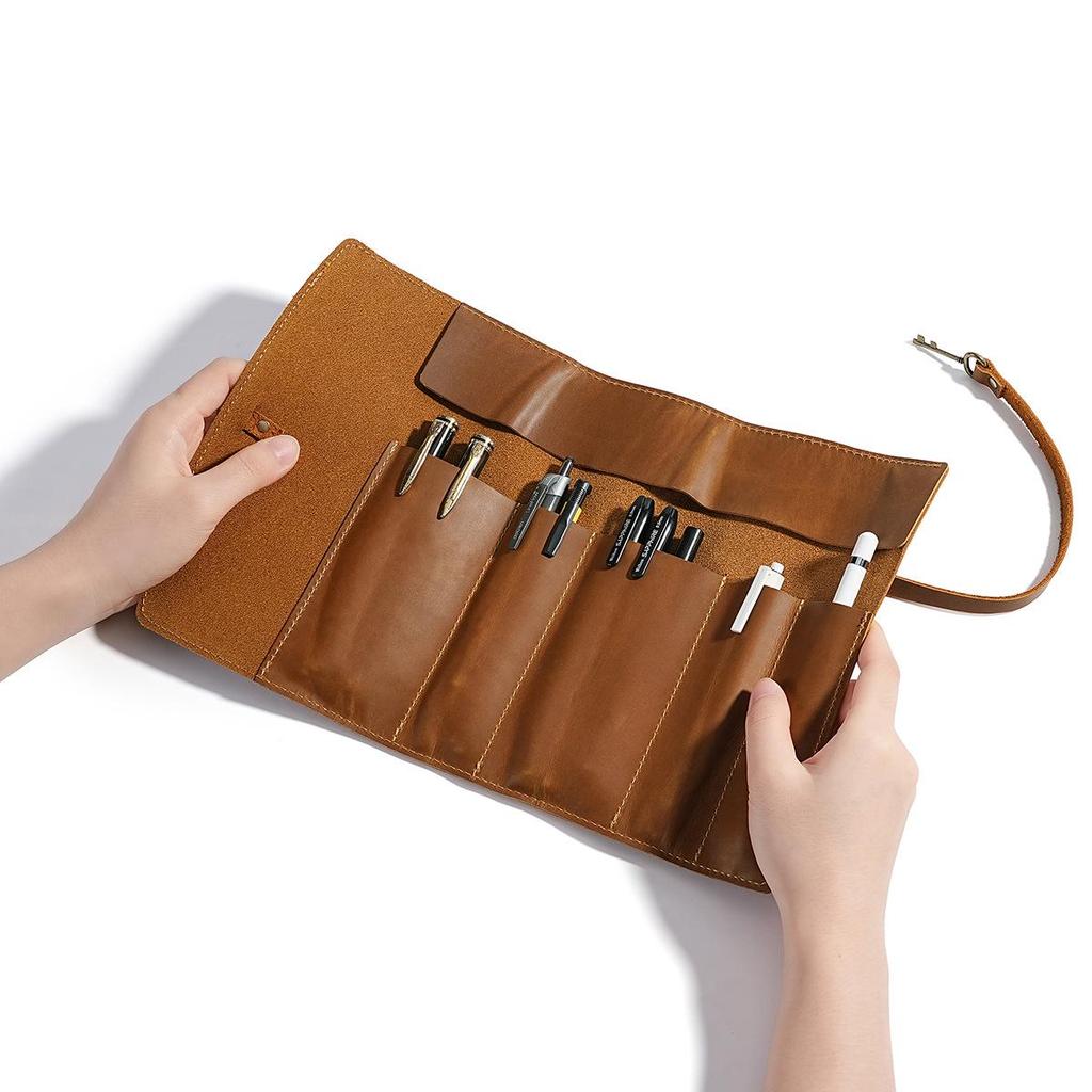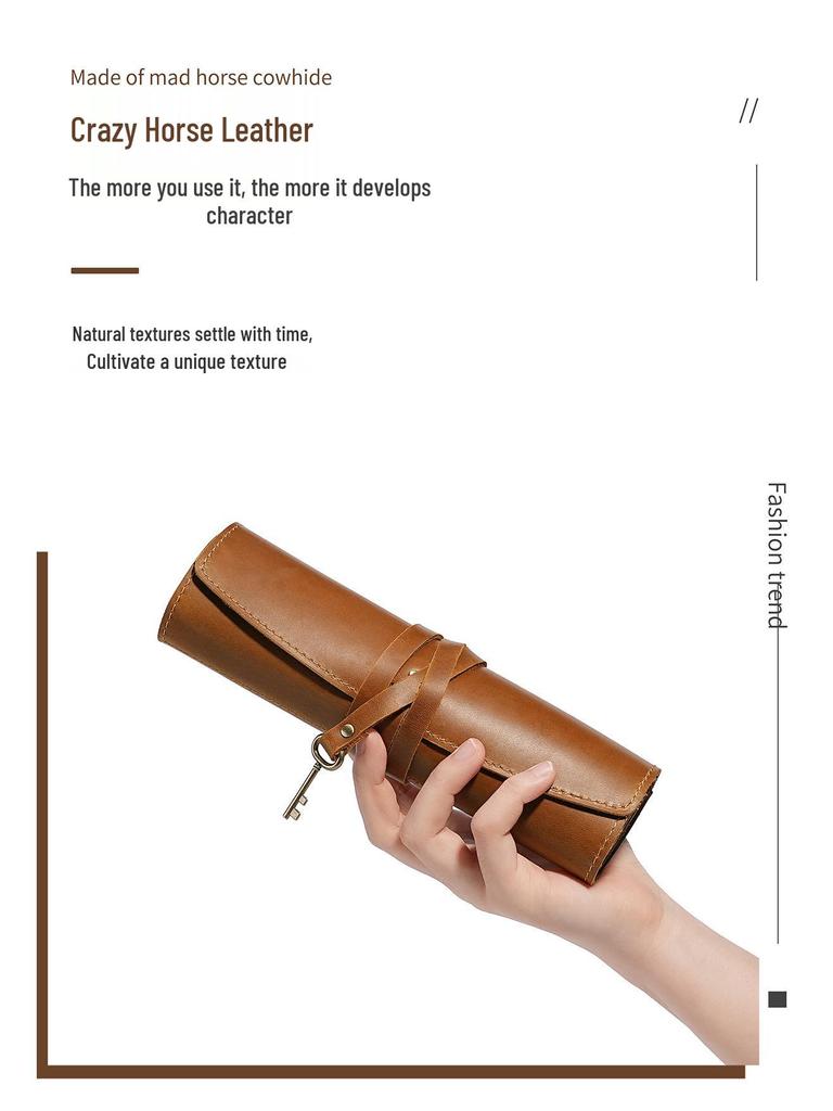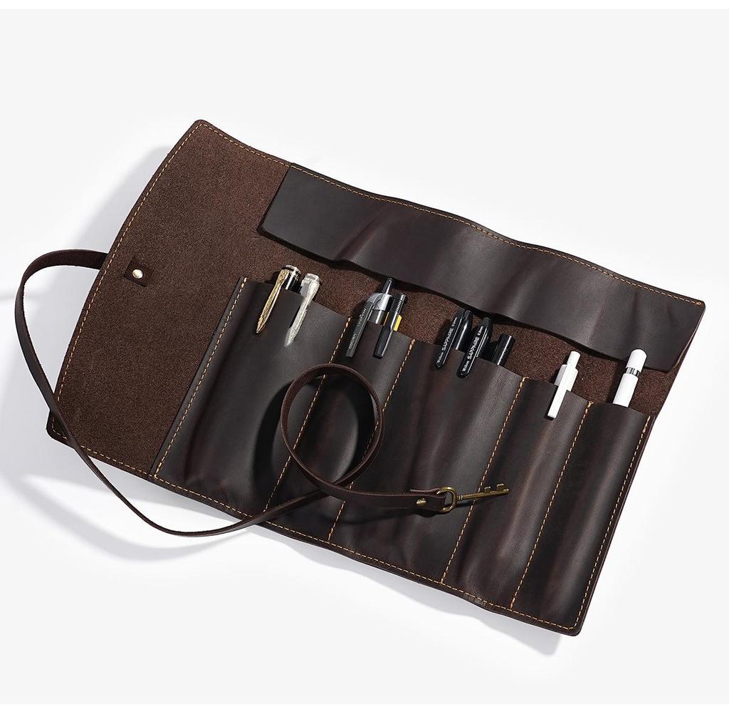 Дорожный кожаный сворачивающийся пенал - Crazy Horse Держатель для перьевой ручки, карандаша и шариковой ручки