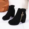 Внешняя торговля большой размер высокий каблук короткие замшевые ботинки Мартин женские осень и зима новые круглый носок толстый каблук боковая молния короткие ботинки