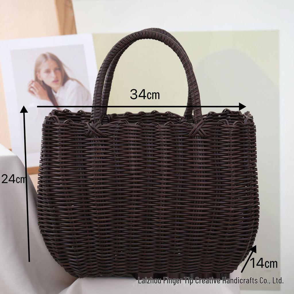 Пасторальный стиль Сумка инфлюенсера для леди: Плетеная корзина для пикника и покупок из имитации ротанга