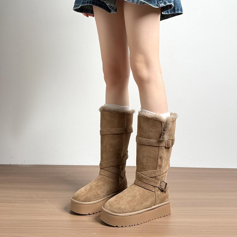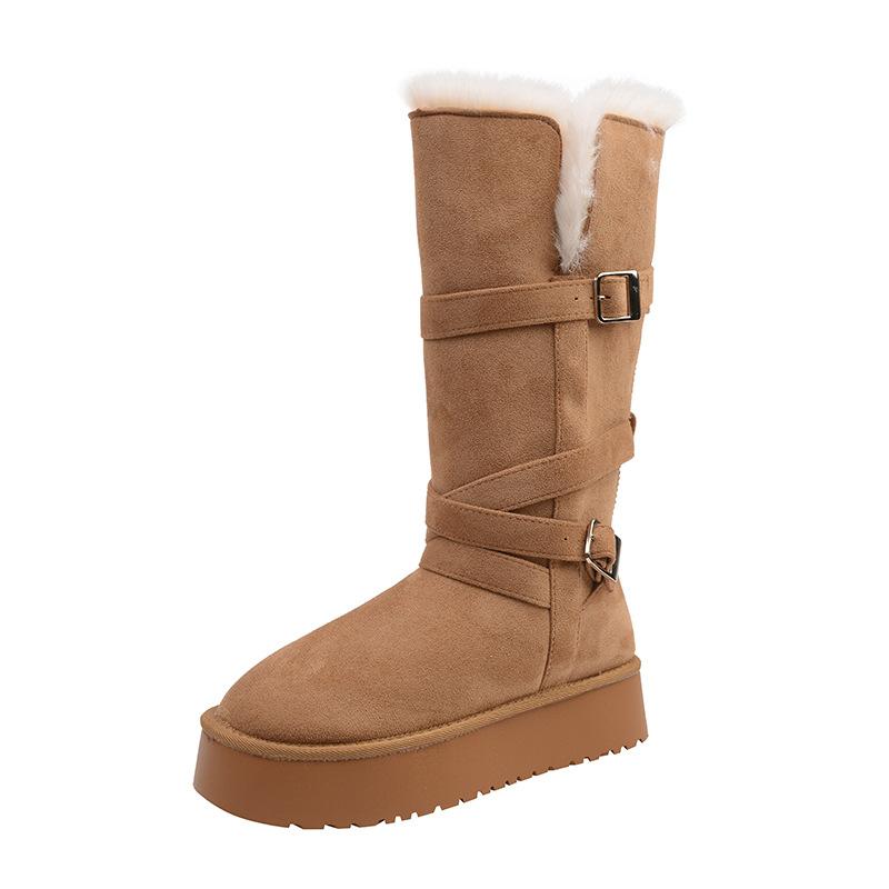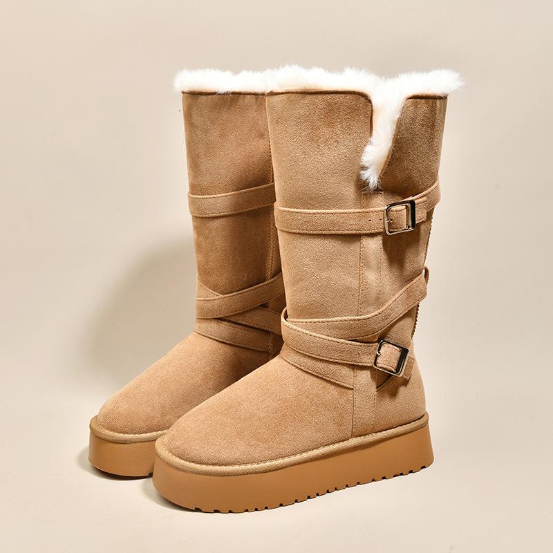 Женские зимние меховые сапоги на толстой подошве со штрипкой на одну ногу, легкие, теплые, непродуваемые, утепленные, нескользящие, повседневные кроссовки, длинные хлопковые сапоги