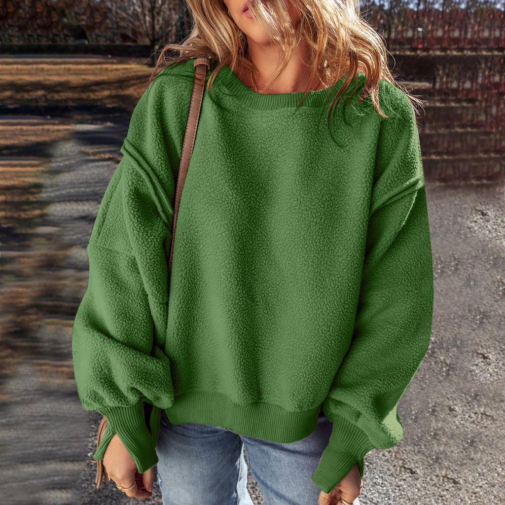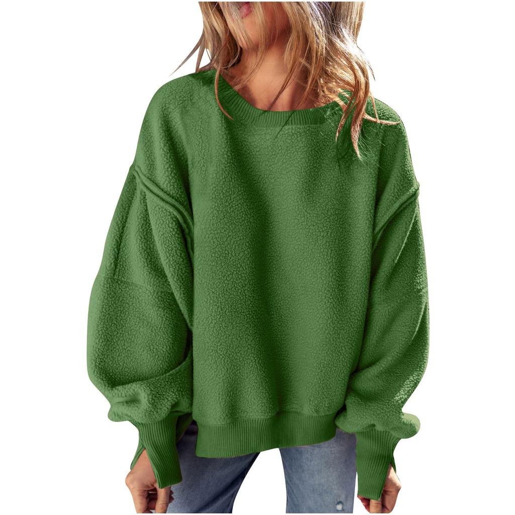 Женский однотонный пуловер с толстовкой, плюшевая модная толстовка с длинным рукавом