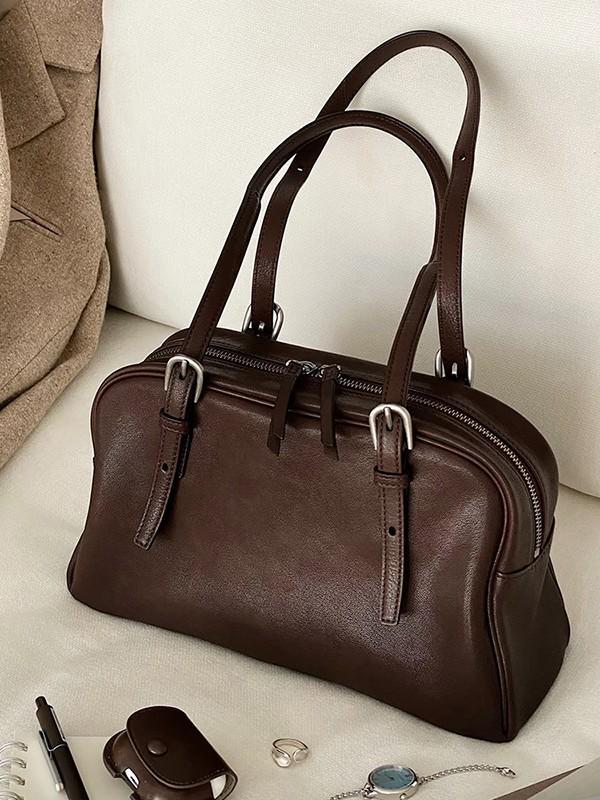 Нишевая Ретро Кожаная Сумка для Боулинга Yoyo Большой Вместимости - Женская Высококлассная Сумка на Плечо