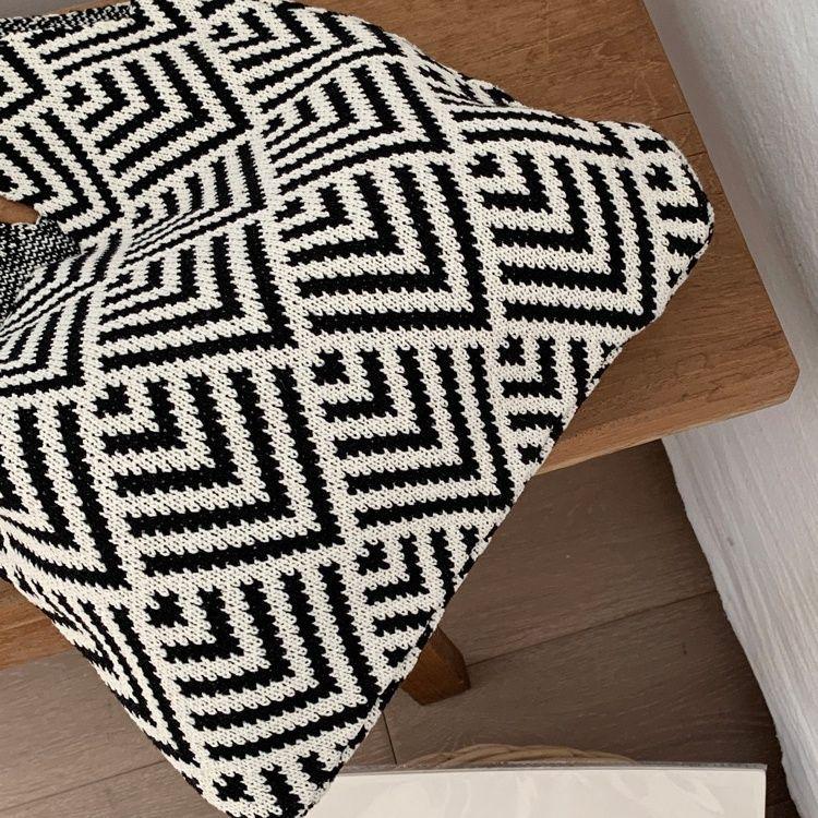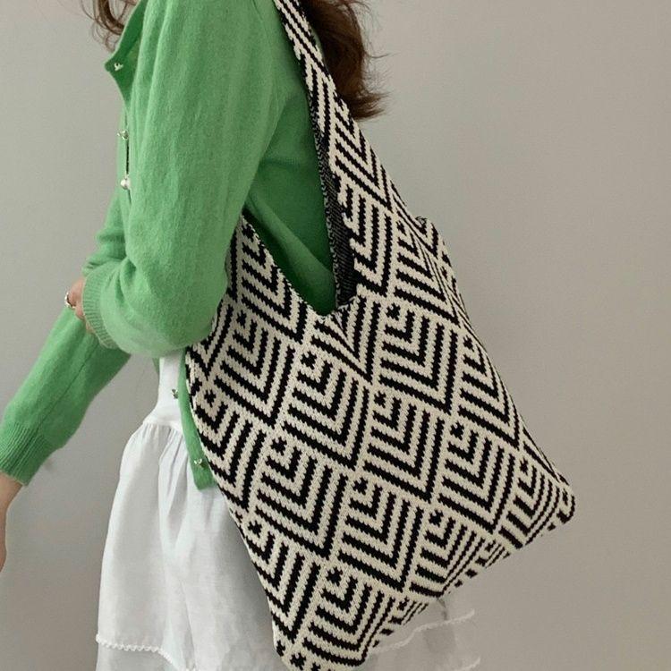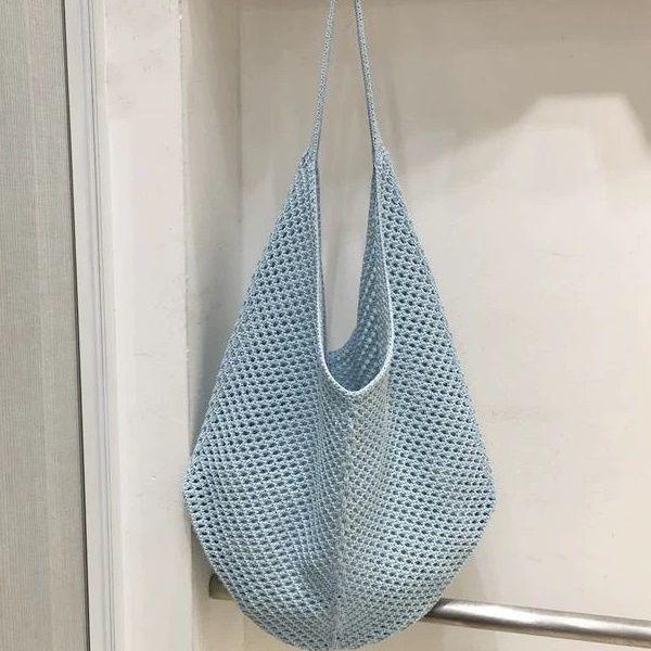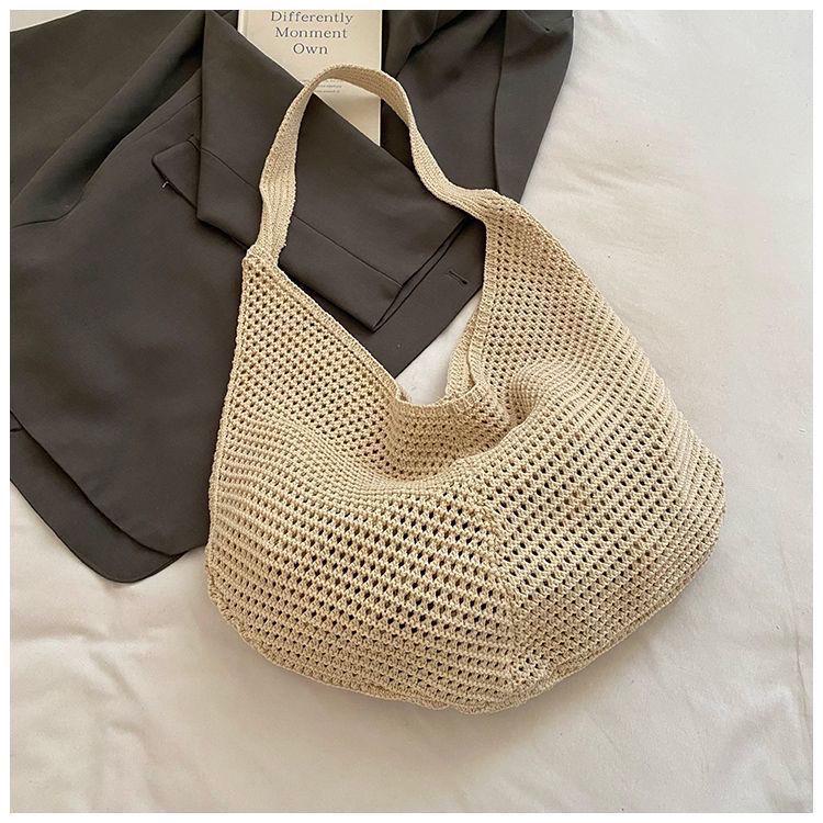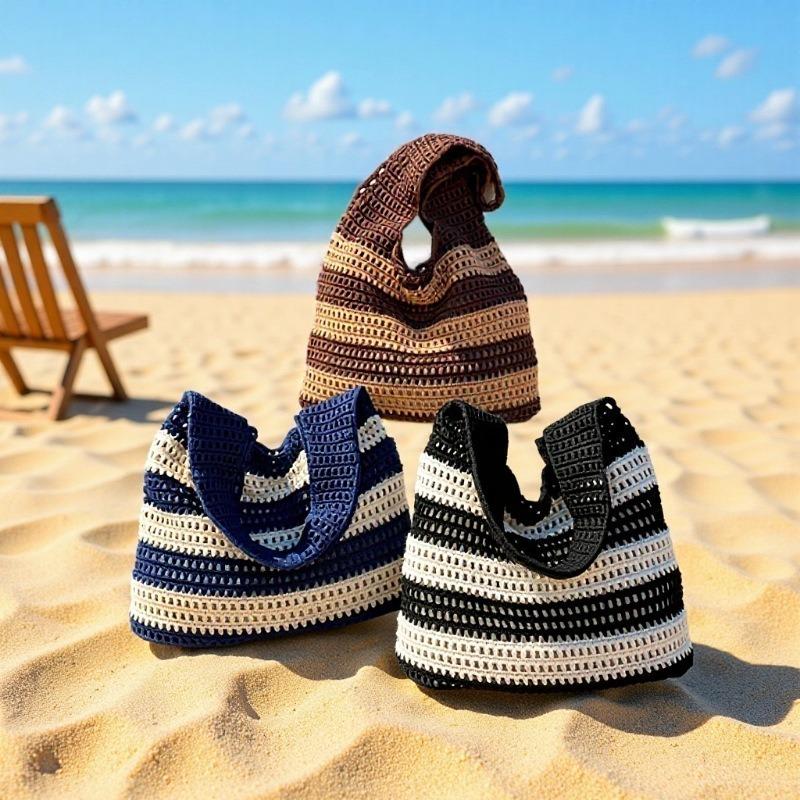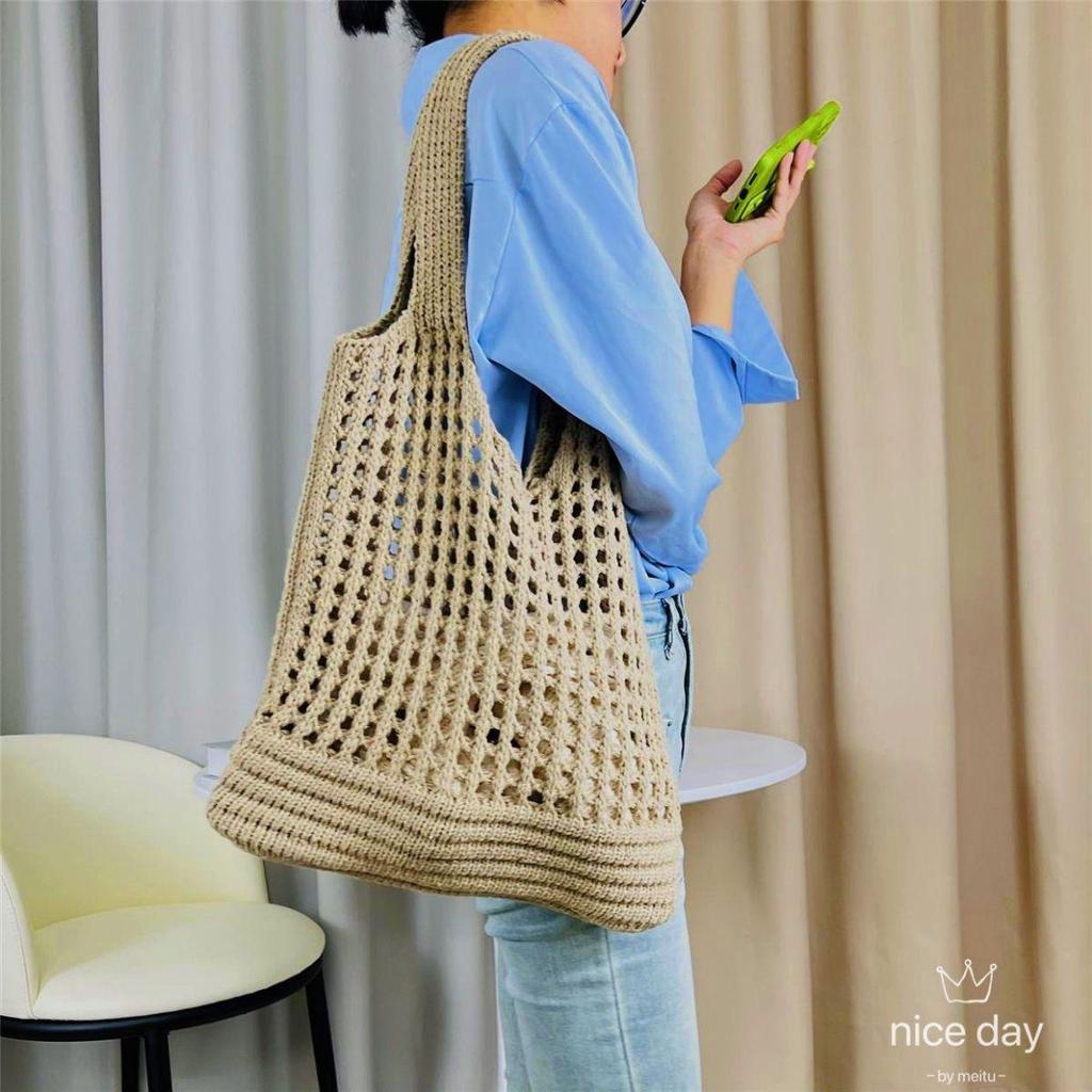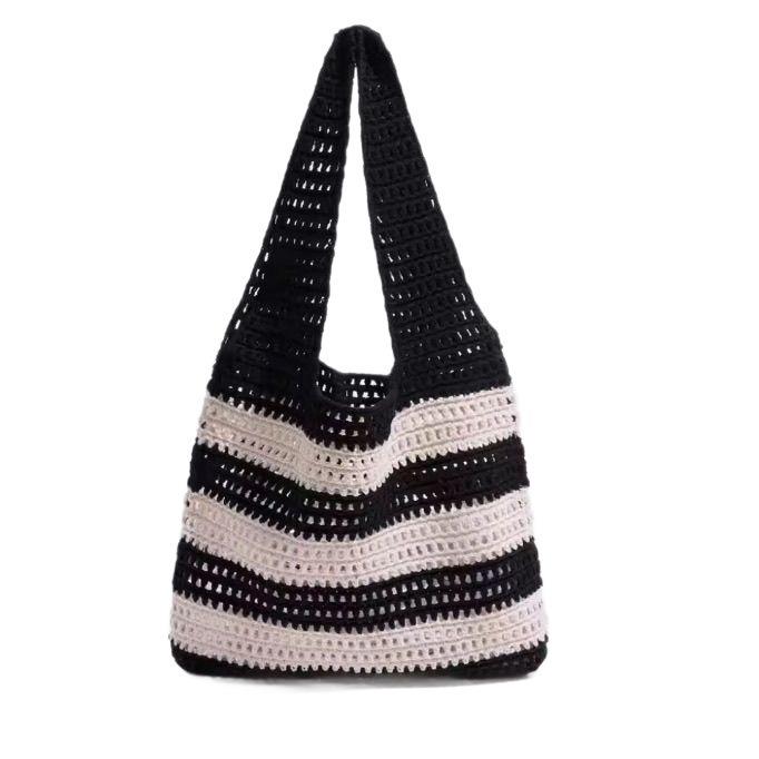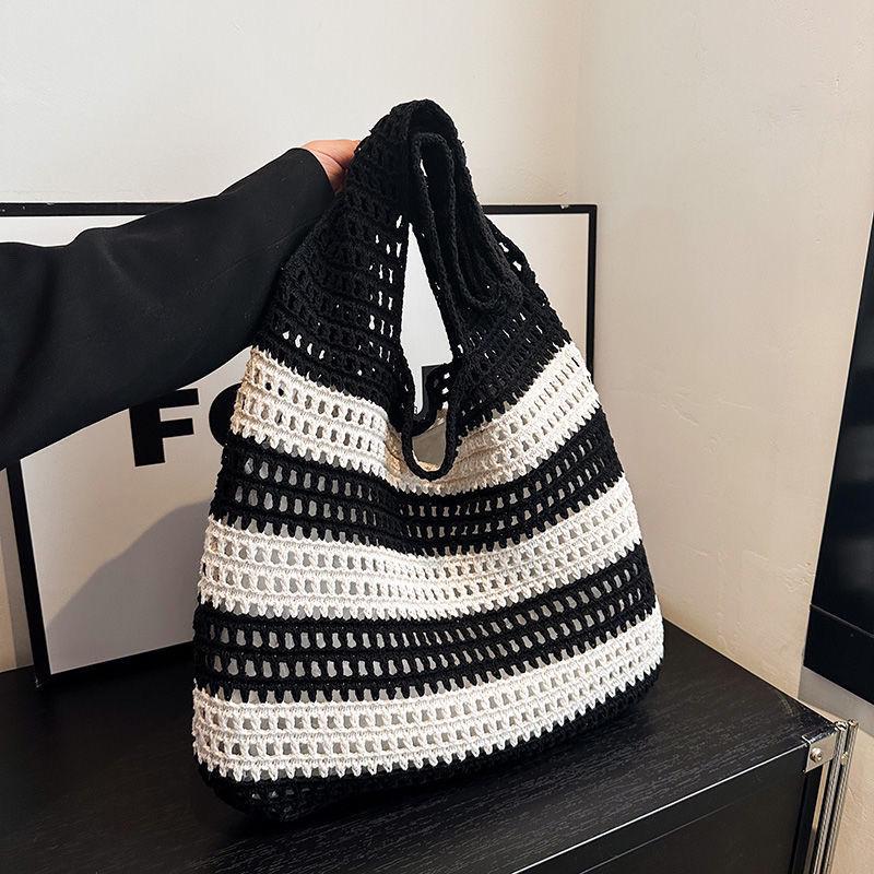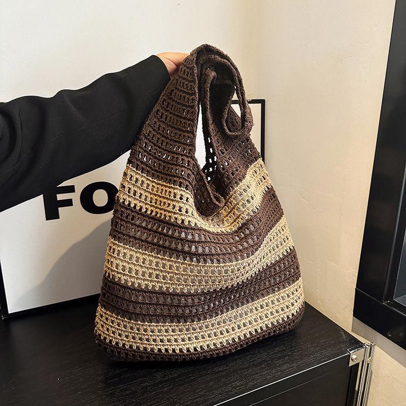 Универсальная женская вязаная сумка-тоут с цветными блоками - Ажурная сумка на одно плечо для пляжа или поездок на работу