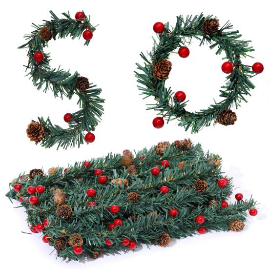 Внутреннее и наружное использование: Эти рождественские искусственные сосновые гирлянды, разработанные для выдерживания различных условий окружающей среды, можно повесить в гостиных, спальнях, садах или на передних стенах без выцветания или повреждений, что делает их идеальными для разнообразных сценариев декорирования.