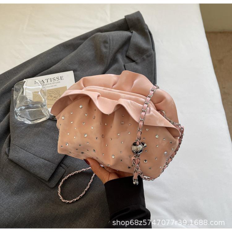2025 summer new shoulder large capacity fashion lightweight shoulder bag going out casual pleated messenger bag chain bag