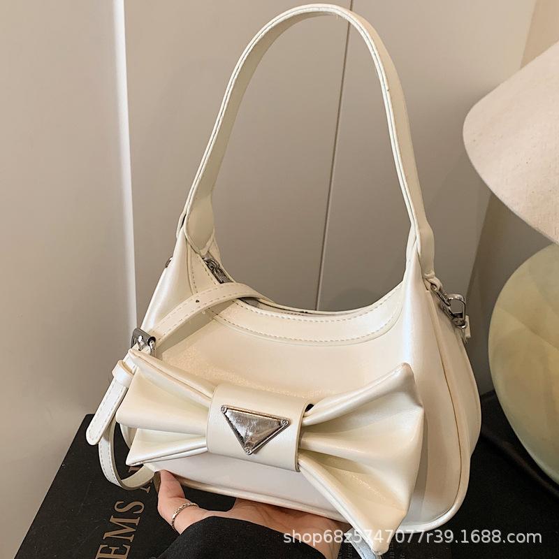 2025 New Bow Shoulder Bag Simple and Fashionable Women's Underarm Bag Versatile Casual Crescent Bag Handbag