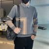 Мужской пуловер, геометрический лацкан, контрастный цвет, длинный рукав, облегающий, имитация двух частей, рубашка с воротником, вязаный базовый топ