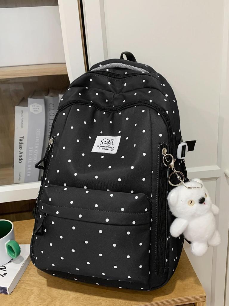 Рюкзак в горошек для студентов: Большая вместимость, Повседневный, для школы и прогулок