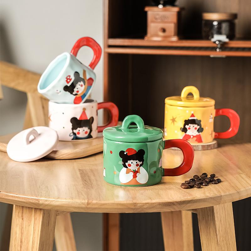 Милая кружка для счастливой девушки, керамическая чашка для девушки конфетного цвета с крышкой, чашка для пары, бытовая чашка для молока для завтрака