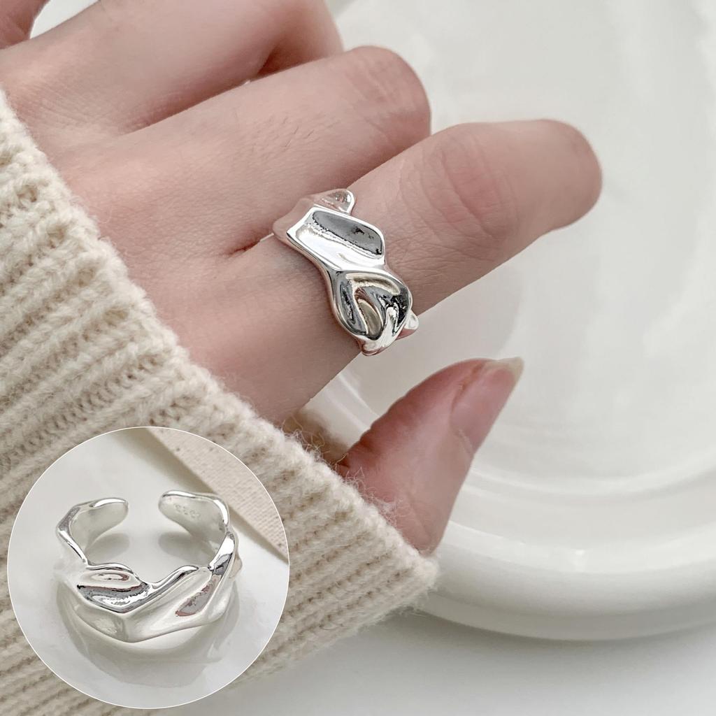 Кольцо на палец в корейском стиле из серебра 925 пробы с геометрическим дизайном - Женское винтажное хип-хоп украшение для указательного пальца или мизинца.