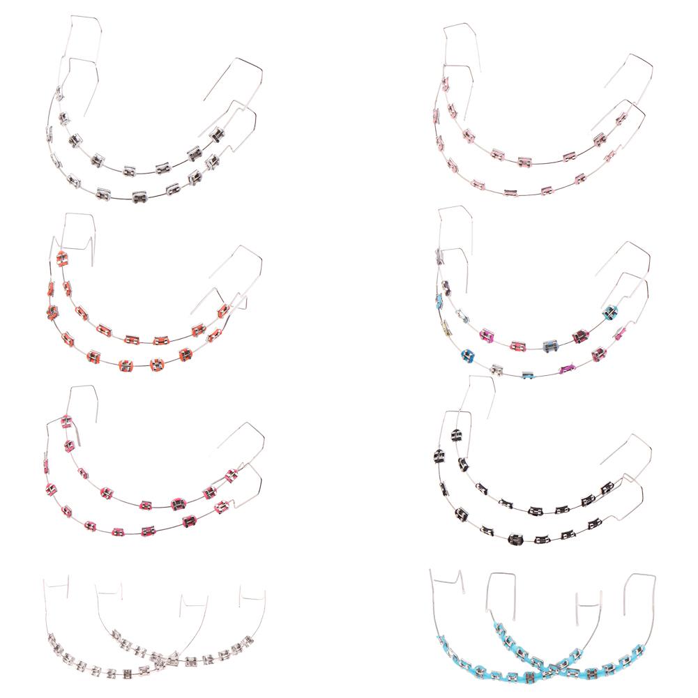 1 пара стоматологических фейковых брекетов с коробкой для хранения Временное украшение зубов Цветной стоматологический декор Брекеты для ежедневной защиты зубов