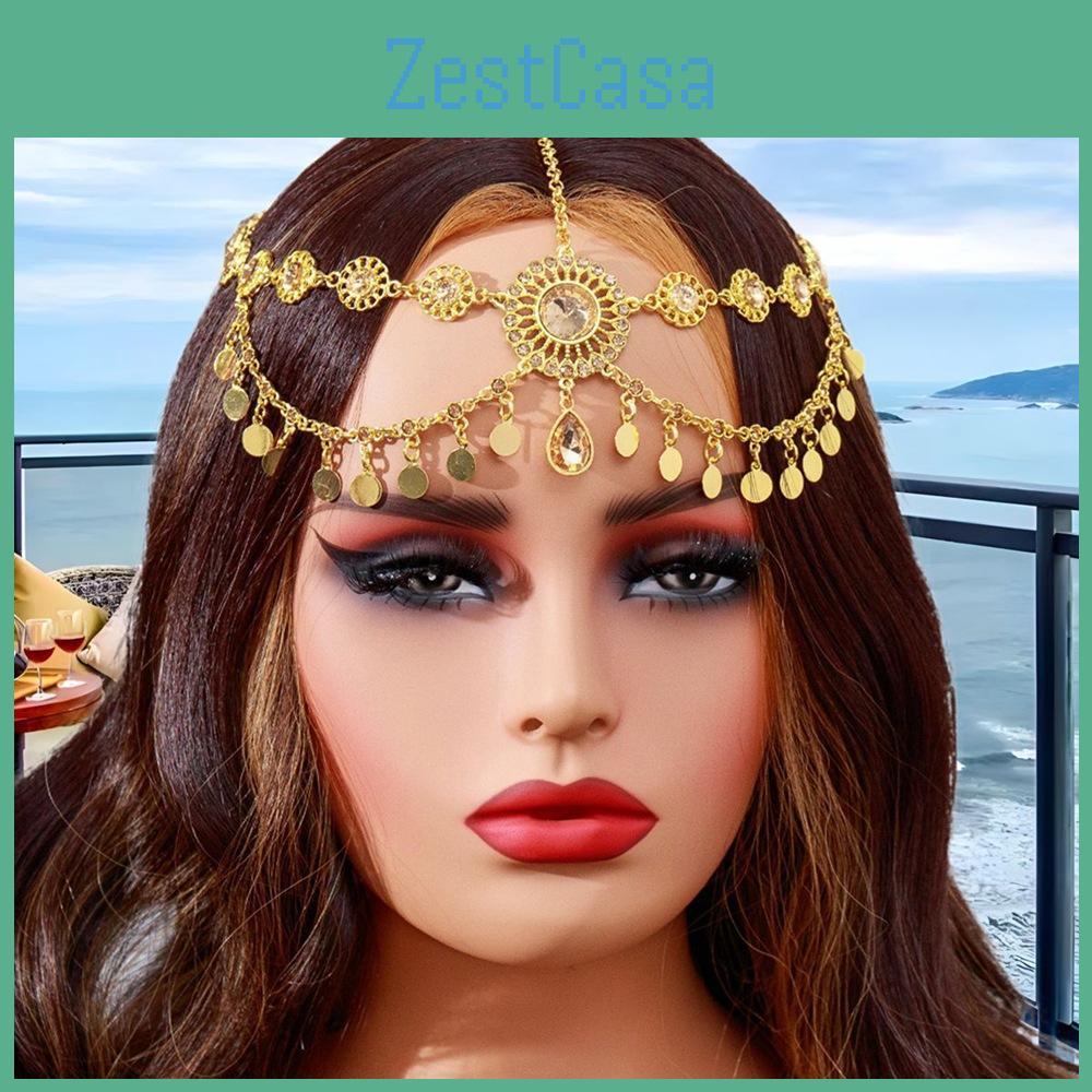 Имитация Драгоценного Камня Элегантное Украшение Женский Золотой Головной Убор с Кисточкой