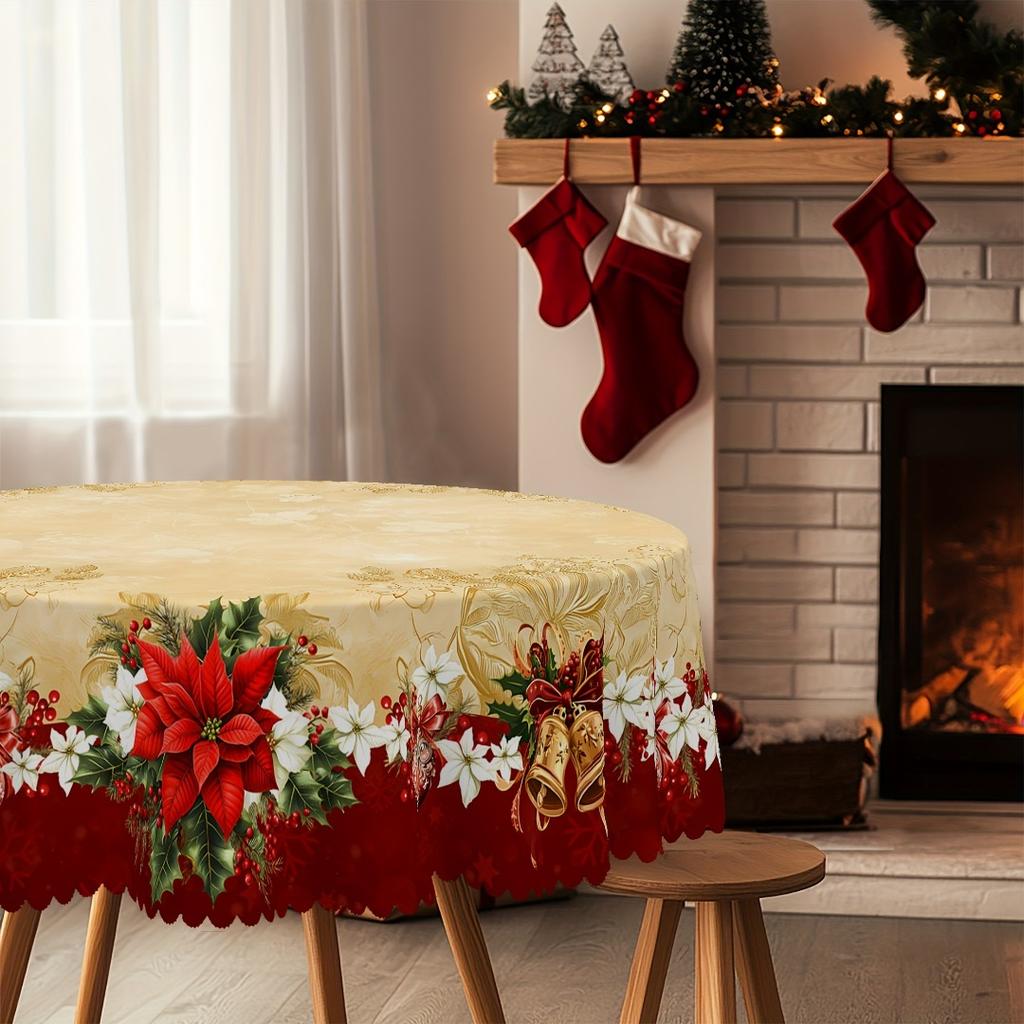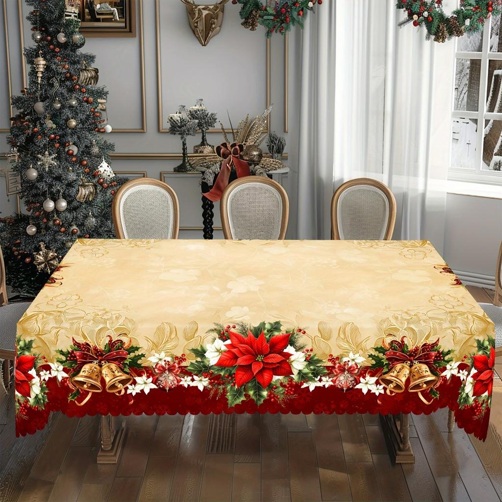 1 шт. Рождественские скатерти Красный цветочный принт Водонепроницаемые Маслостойкие 2025 Новые для украшения дома Рождество Новый год Рождественское украшение