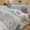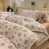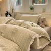 INS Комплекты постельного белья в корейском стиле 2025 Новые Хлопковые Мятые Двухслойные Пряжа Кружево Комплекты постельного белья Клетчатый Рождественский декор Подарок Домашний декор